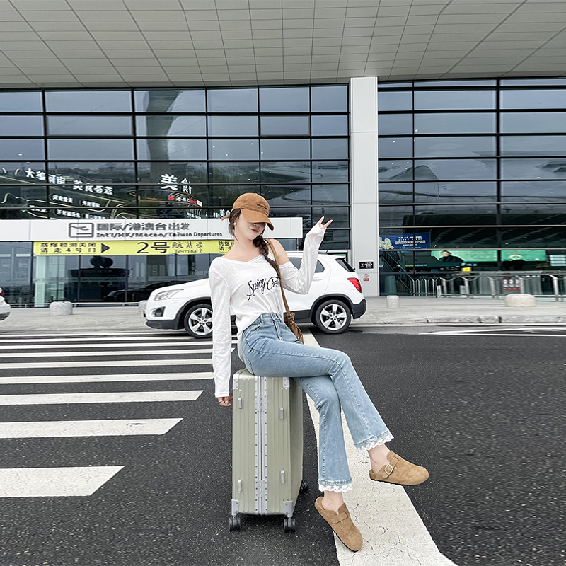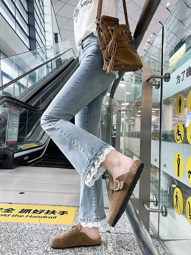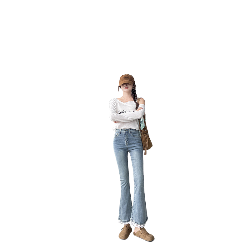 FA56800# -春秋复古毛边微喇牛仔裤女大码胖mm高腰显瘦弹力喇叭裤子 服裝批發女裝批發服飾貨源
