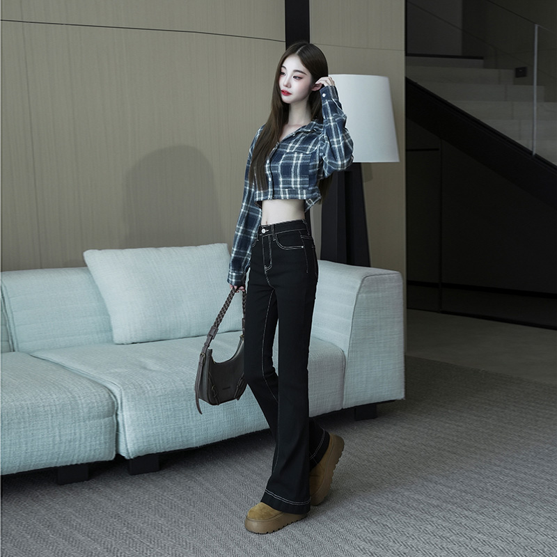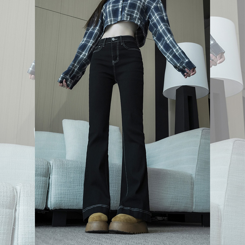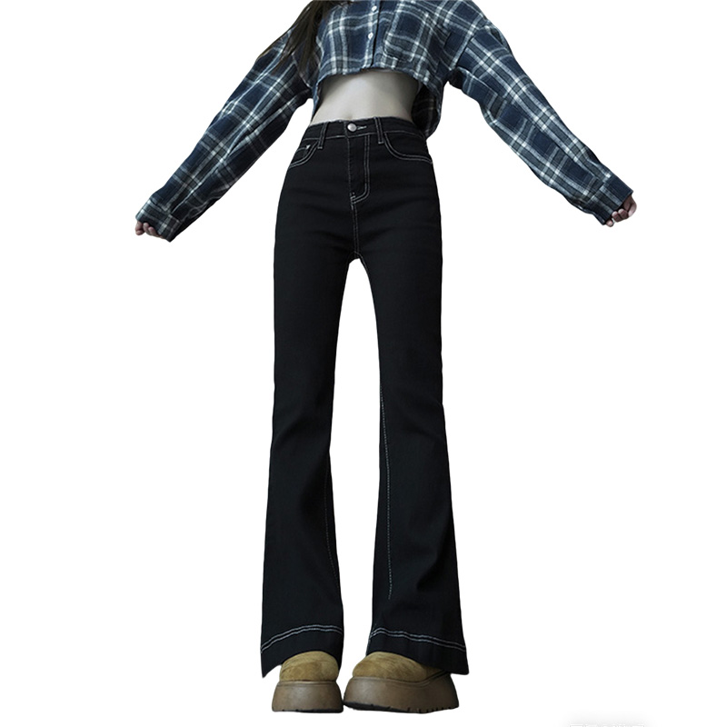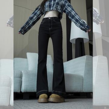 FA56803# -春秋微喇叭阔腿时尚显瘦牛仔裤女大码胖mm高腰垂感拖地裤子 服裝批發女裝批發服飾貨源