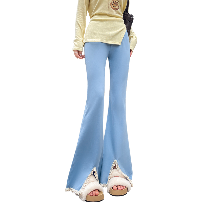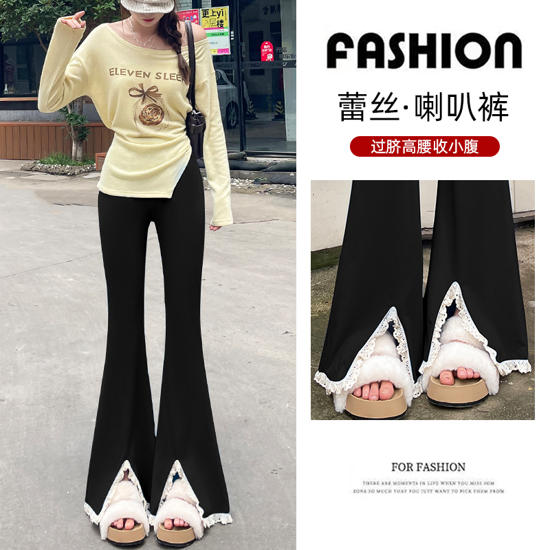 FA56807# 春夏新款微喇裤女裤蕾丝拼接女裤高腰垂感显瘦裤子女 服裝批發女裝批發服飾貨源