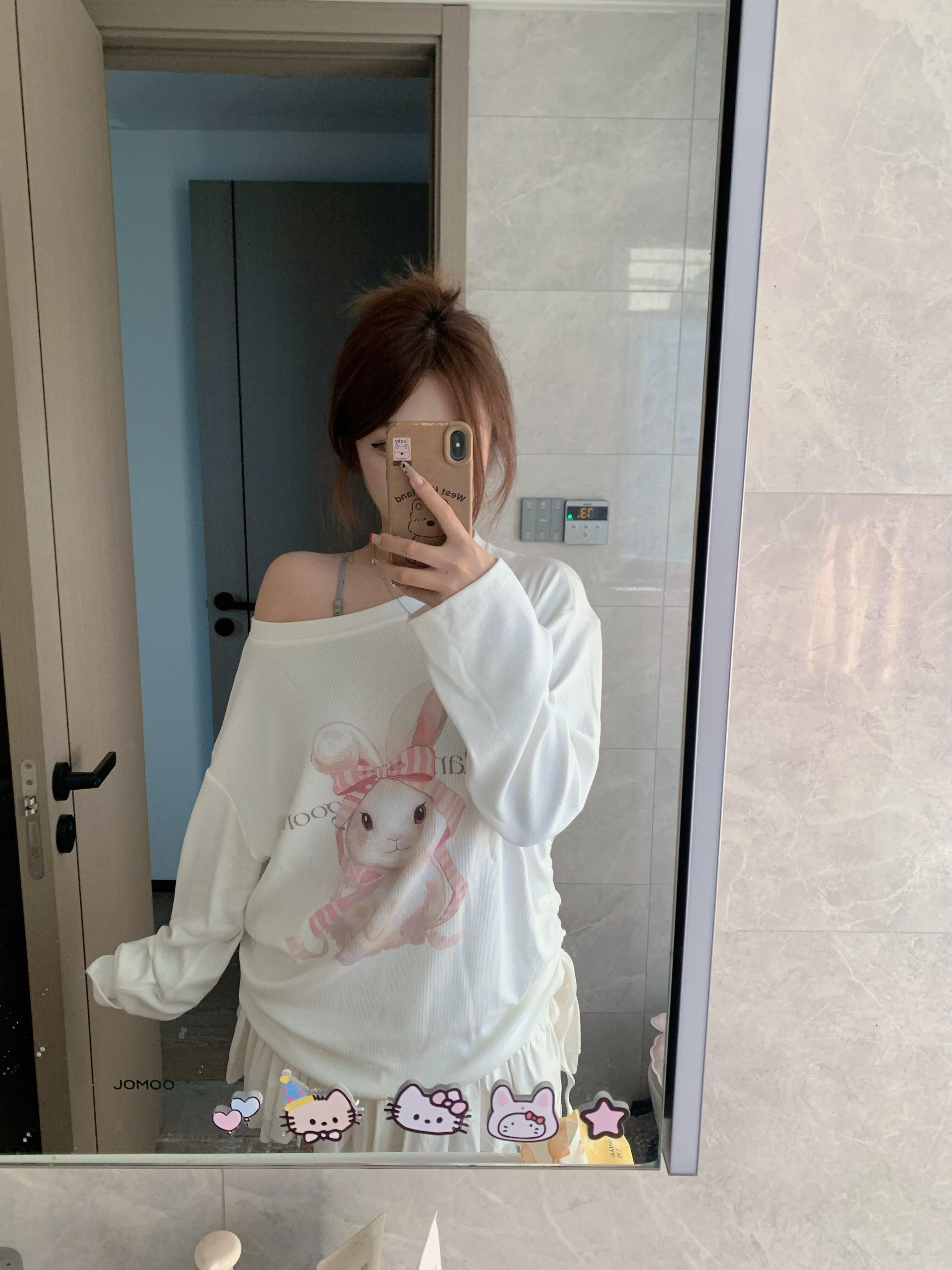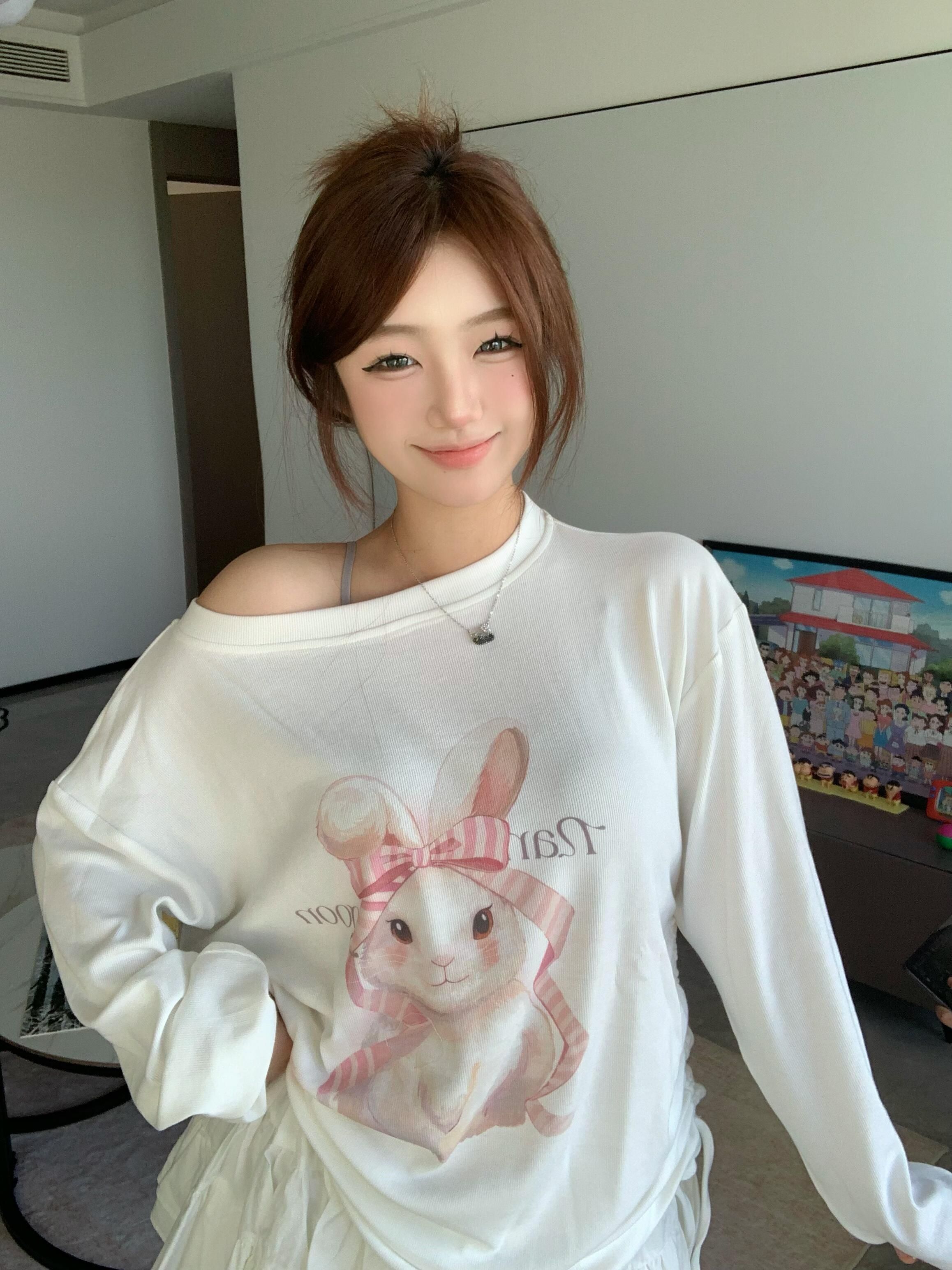 FA56835# 后包领性感斜肩一字领+抽绳露肩宽松长袖t恤女 服裝批發女裝批發服飾貨源