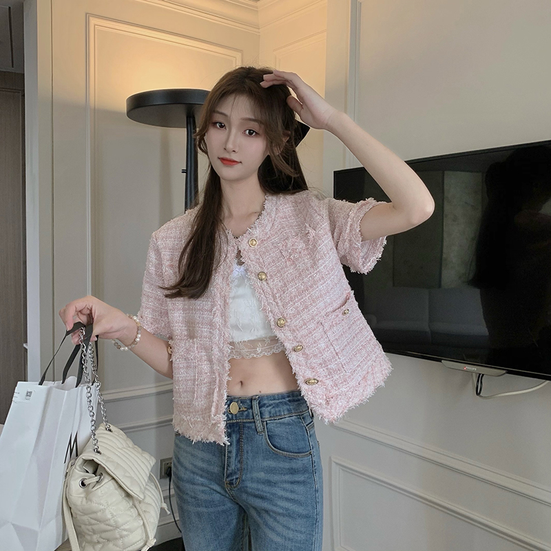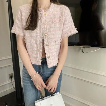 BY10182# 小香风外套女装秋冬新款粗花呢流苏短款百搭宽松洋气短袖上衣 服裝批發女裝批發服飾貨源