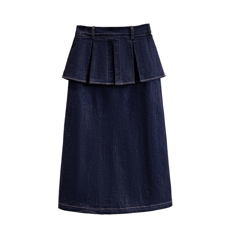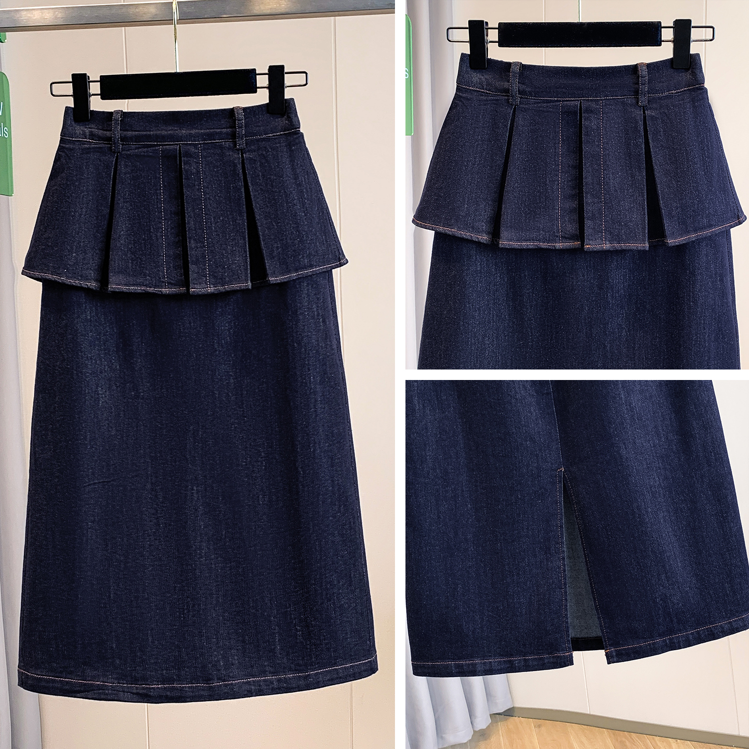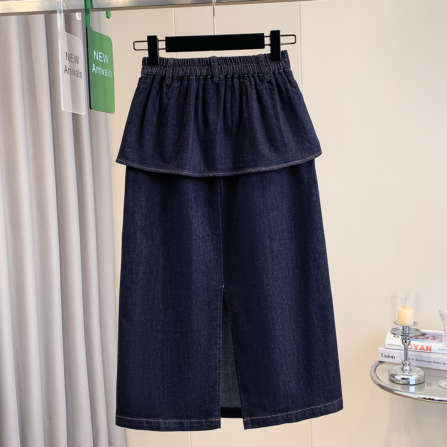 春夏季大码女装假两件遮肚显瘦直筒牛仔半身裙女高腰胖MM裙子 服裝批發女裝批發服飾貨源