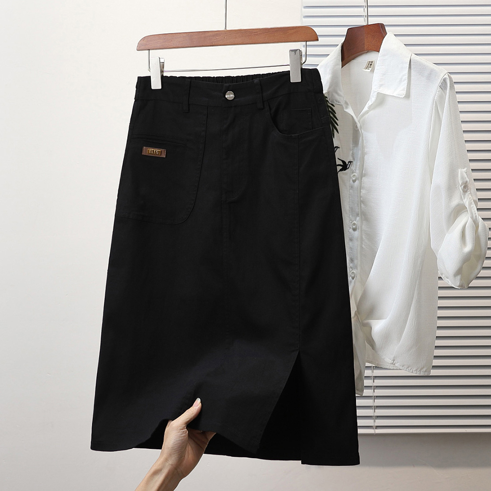 春夏新款大码宽松弹力牛仔半身裙胖MM设计感显瘦中长款A字裙 服裝批發女裝批發服飾貨源