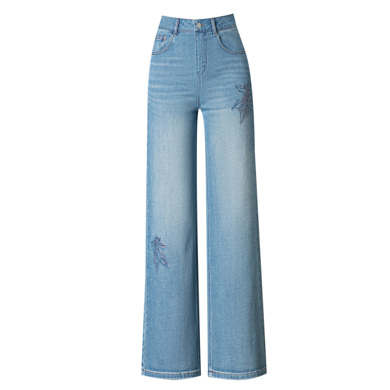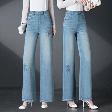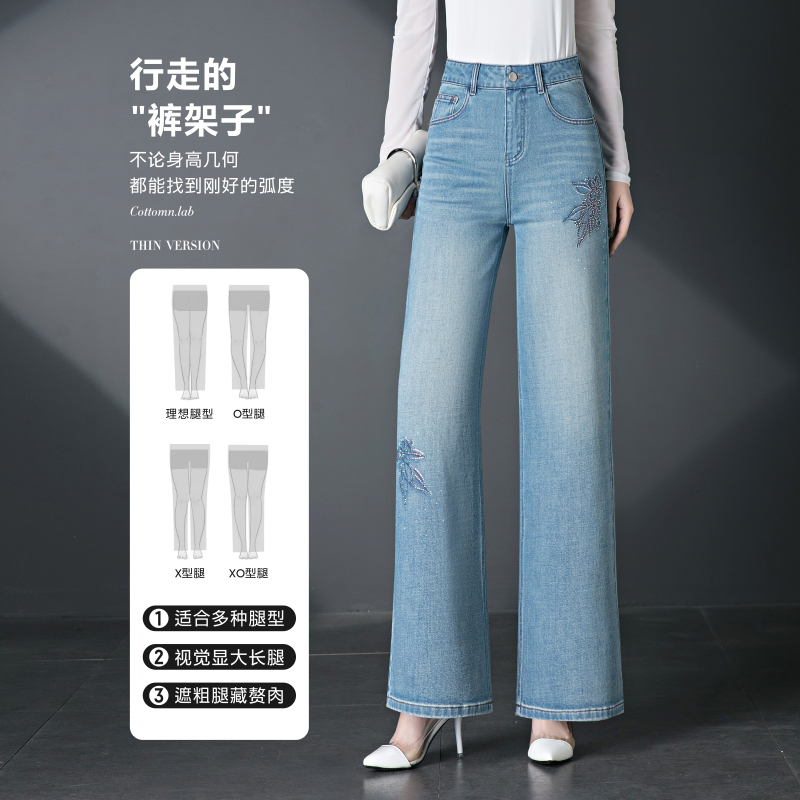 牛仔裤女春秋新款宽松直筒裤垂感高腰阔腿裤蓝色裤子 服裝批發女裝批發服飾貨源