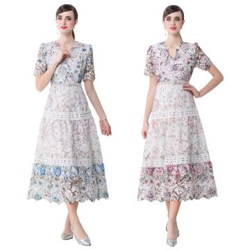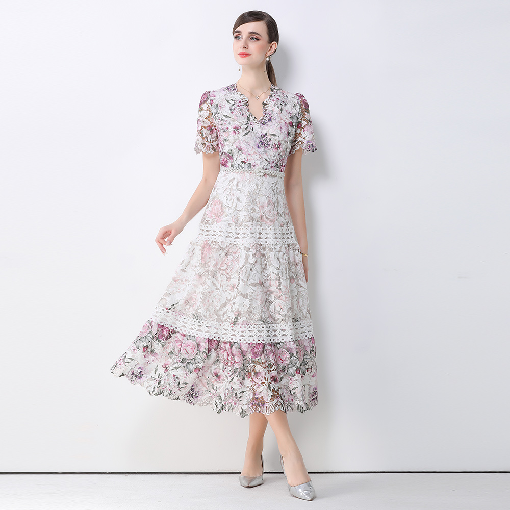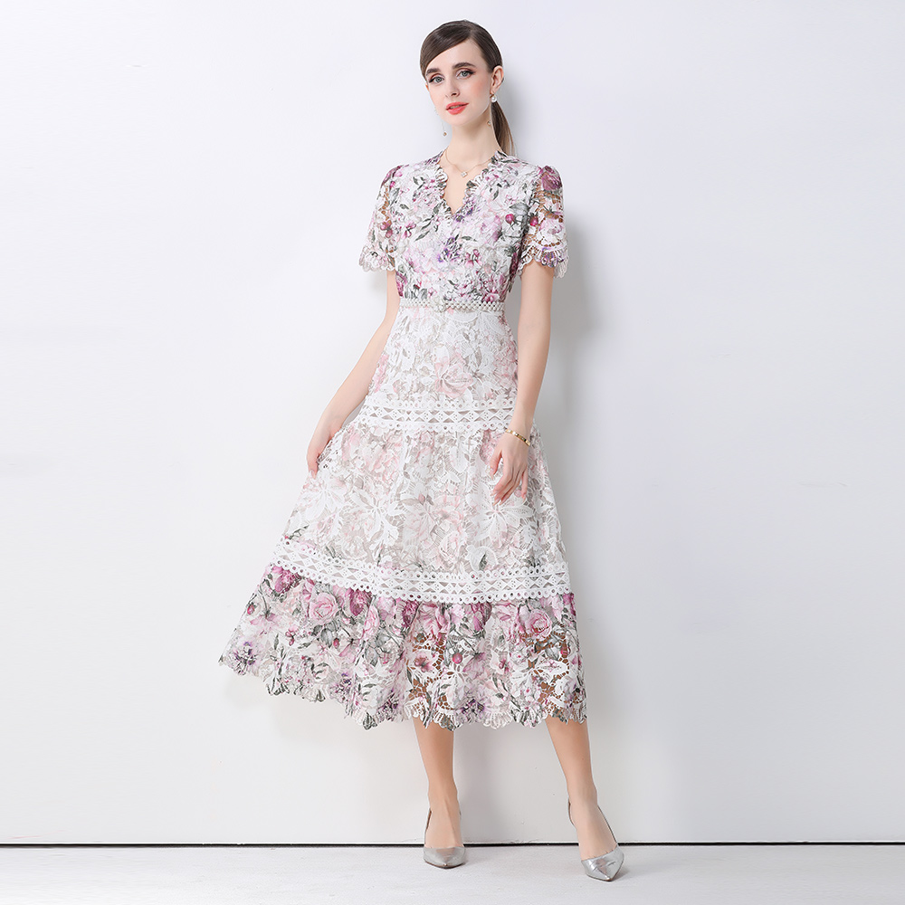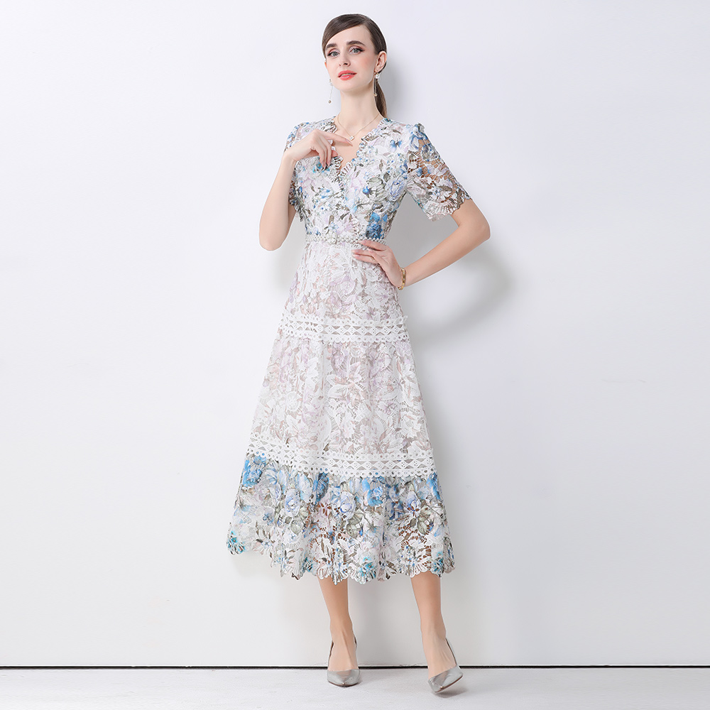 首页 > 短袖连衣裙、夜店装 > BY10318# 高端女装连衣裙新款法式复古镂空钩花收腰大摆长裙 服裝批發女裝批發服飾貨源