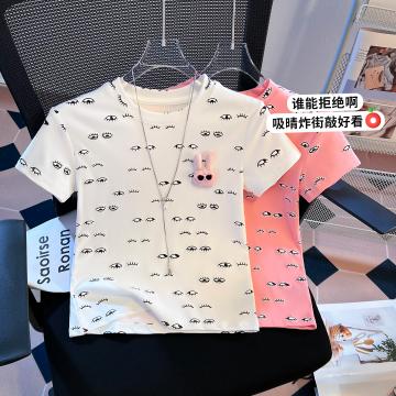 BY10389# 美式复古小狗印花短袖T恤女夏新款韩系修身显瘦辣妹上衣 服裝批發女裝批發服飾貨源