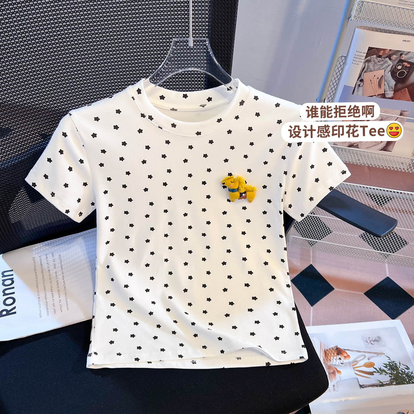BY10390# 韩系印花上衣女夏季新款设计感小众辣妹修身百搭短袖T恤 服裝批發女裝批發服飾貨源