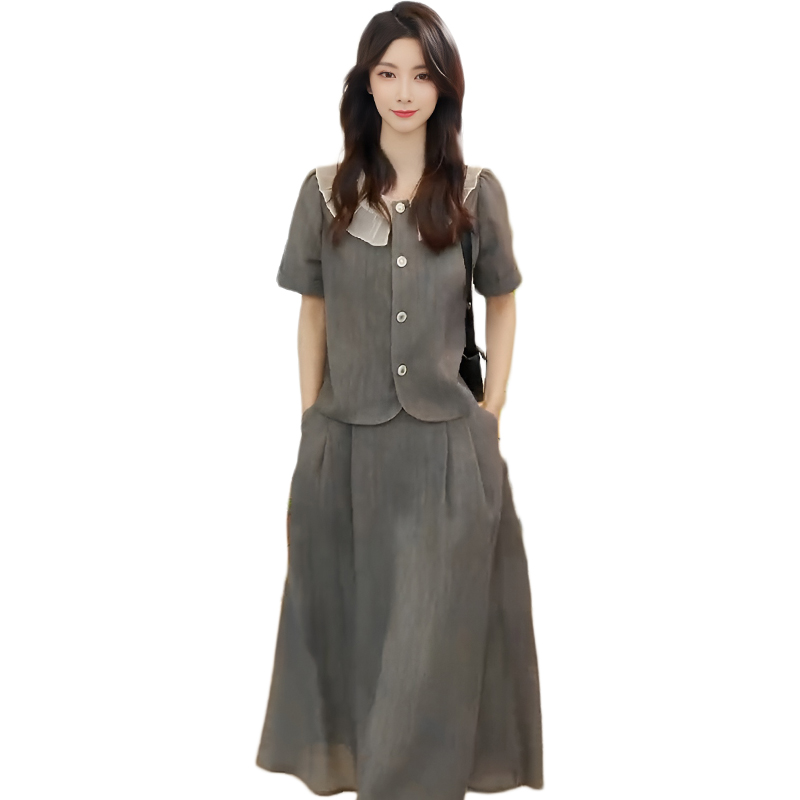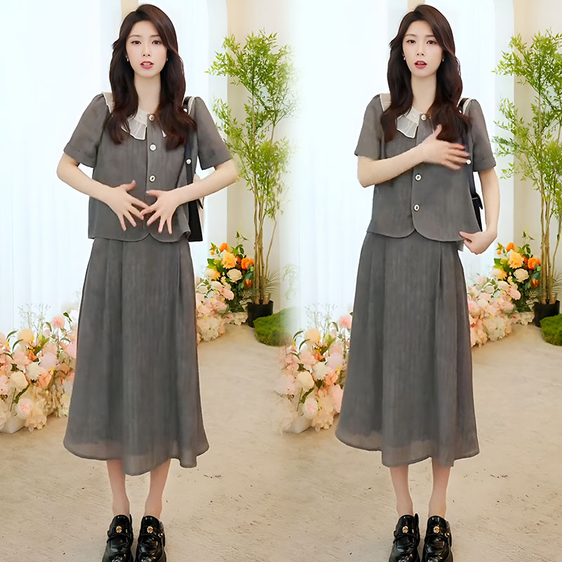 BY10480# 休闲套装裙女夏季新款小个子洋气减龄短袖半身裙两件套 服裝批發女裝批發服飾貨源