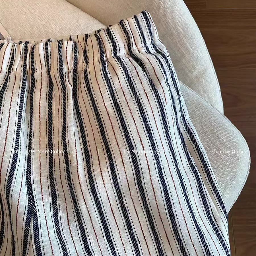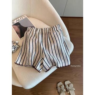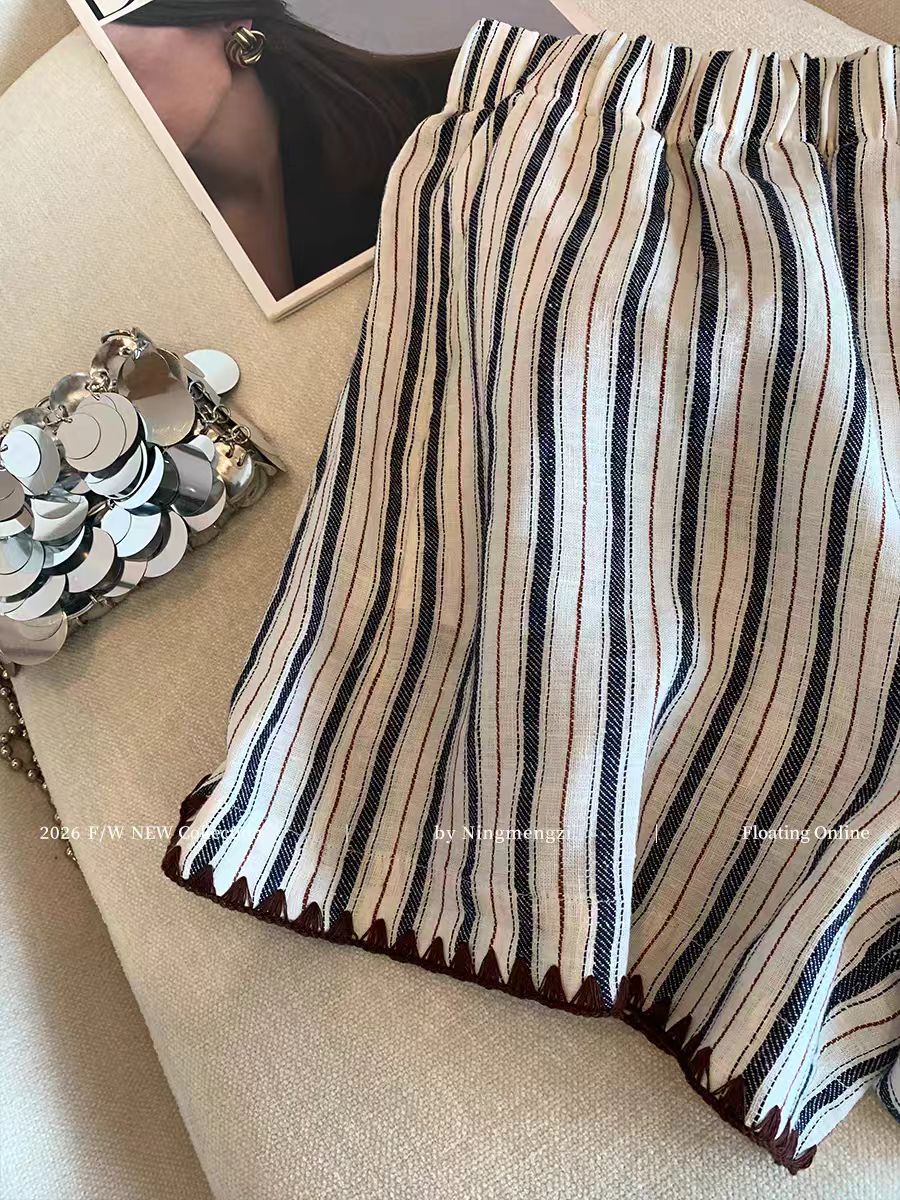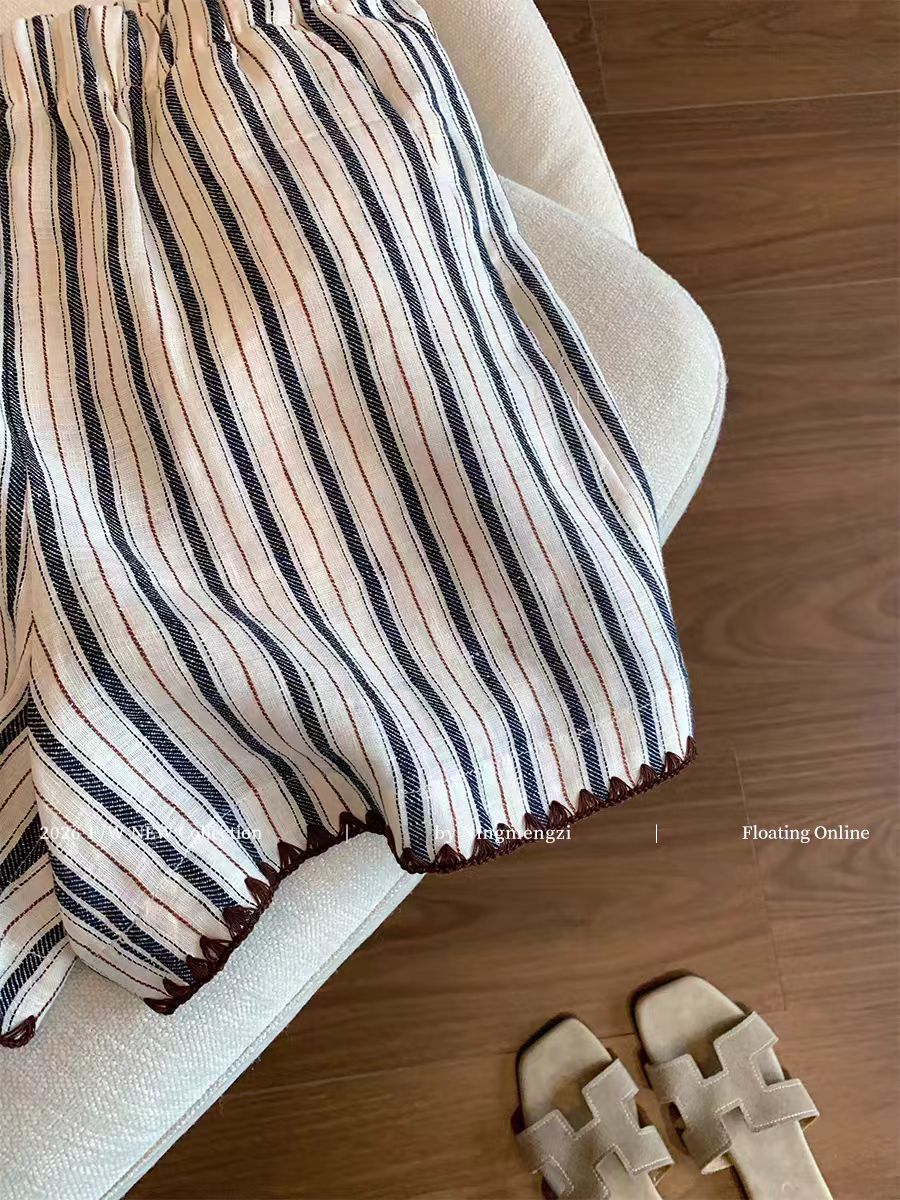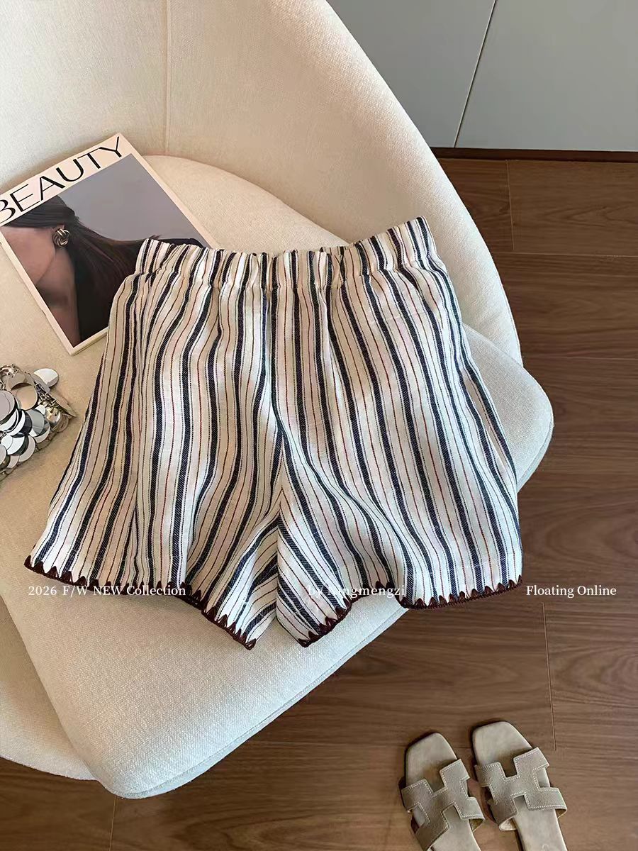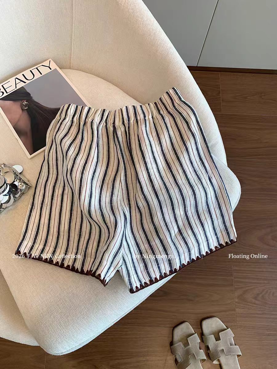 网图条纹编织亚麻短裤女新款设计感宽松显瘦百搭A字阔腿裤 服裝批發女裝批發服飾貨源