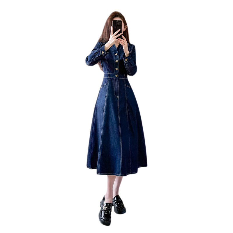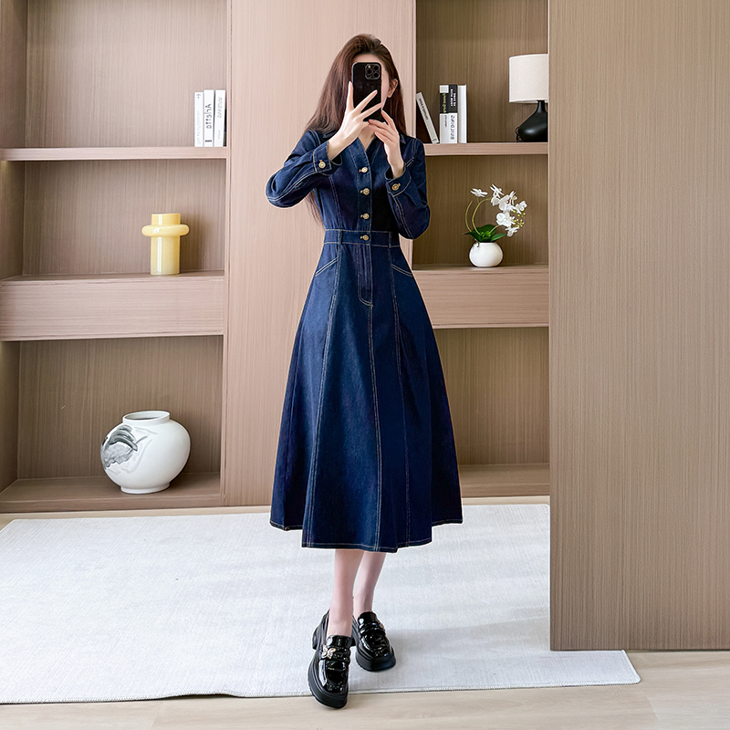 首页 > 夜店裙、长袖连衣裙 > 牛仔连衣裙长袖连衣裙长裙a字裙V领显瘦工装 服裝批發女裝批發服飾貨源