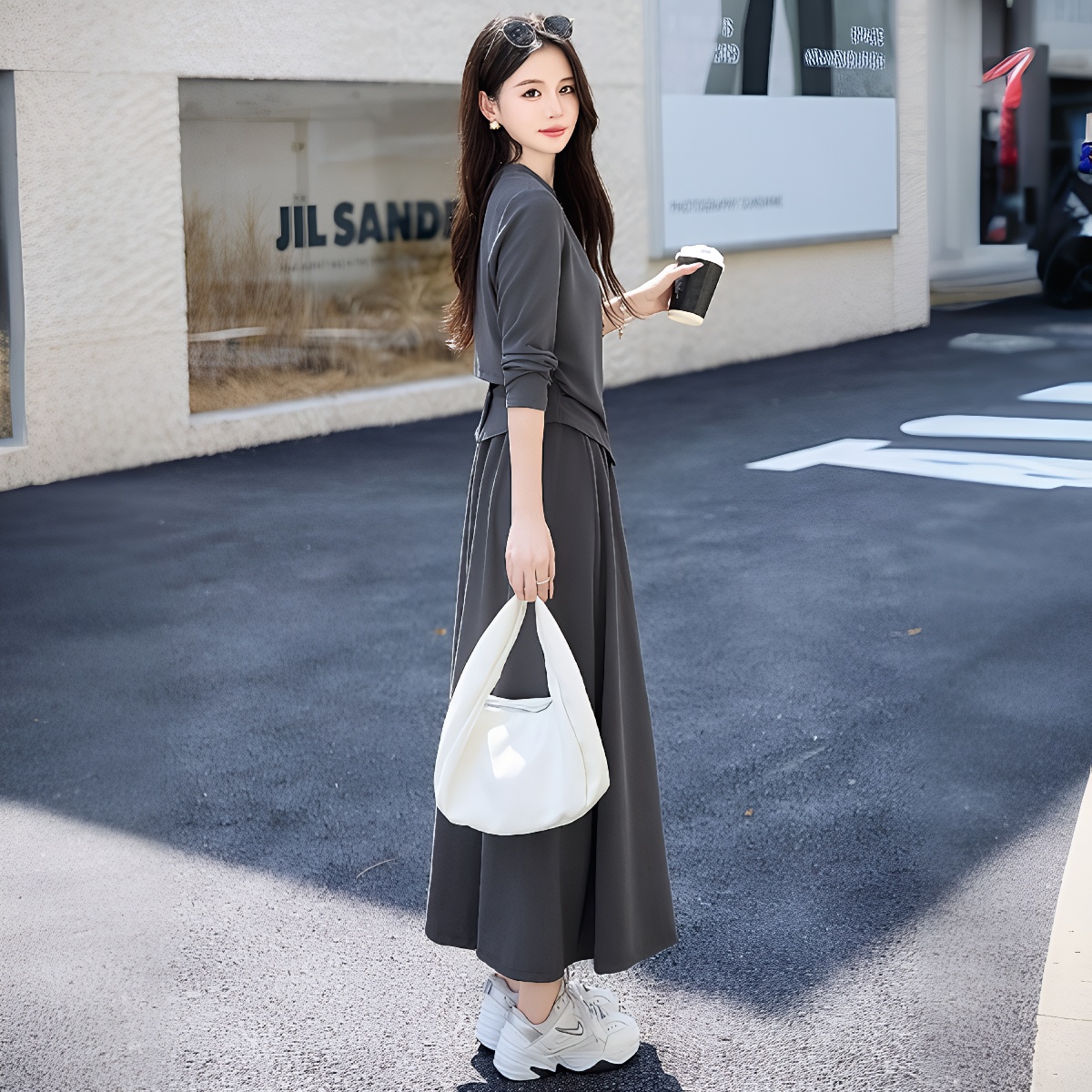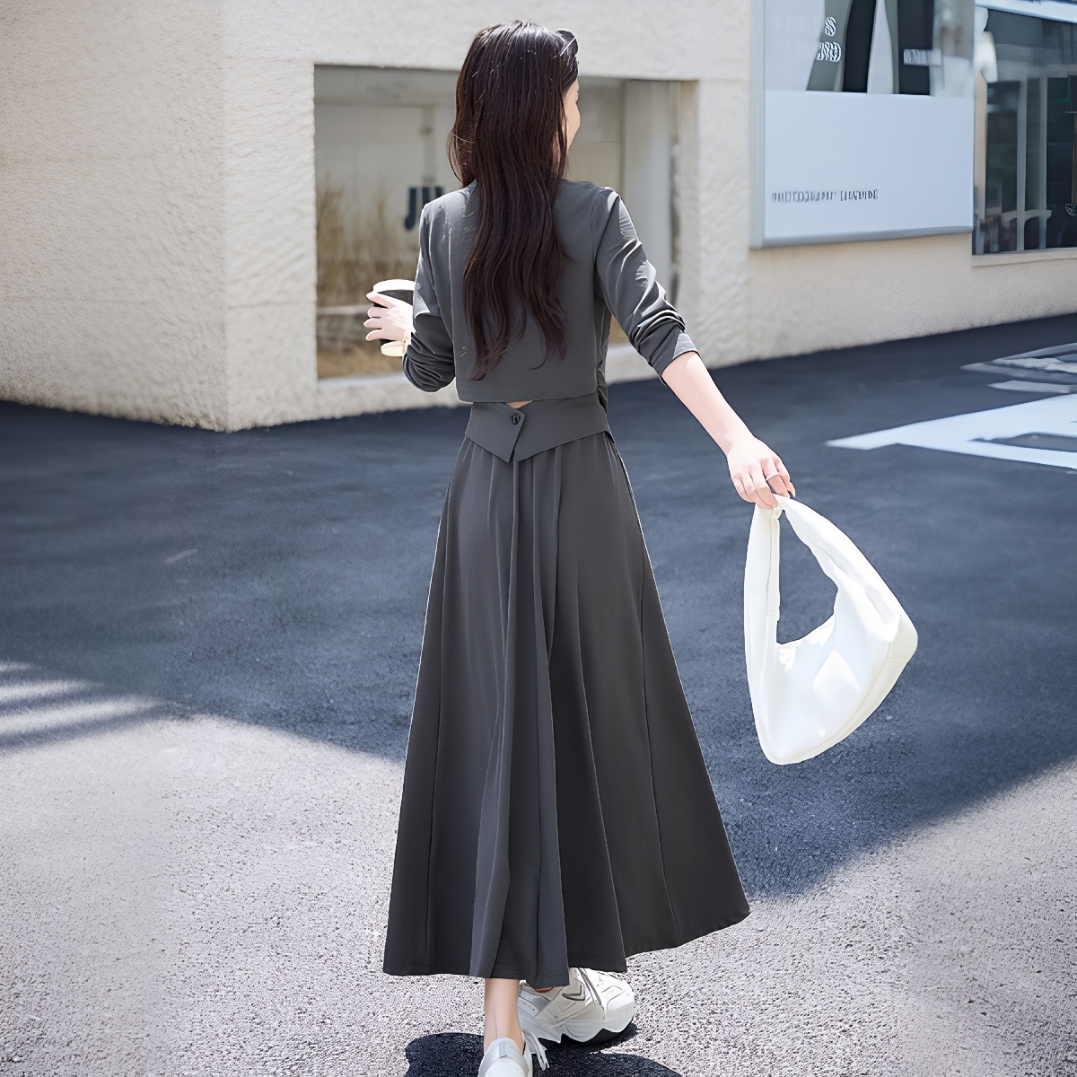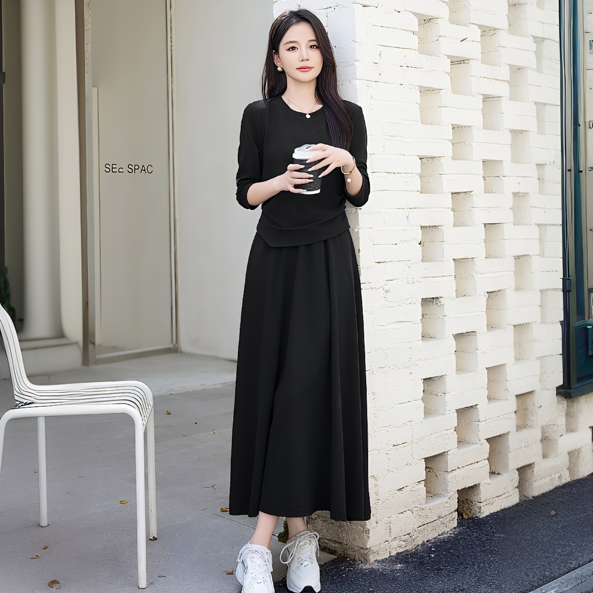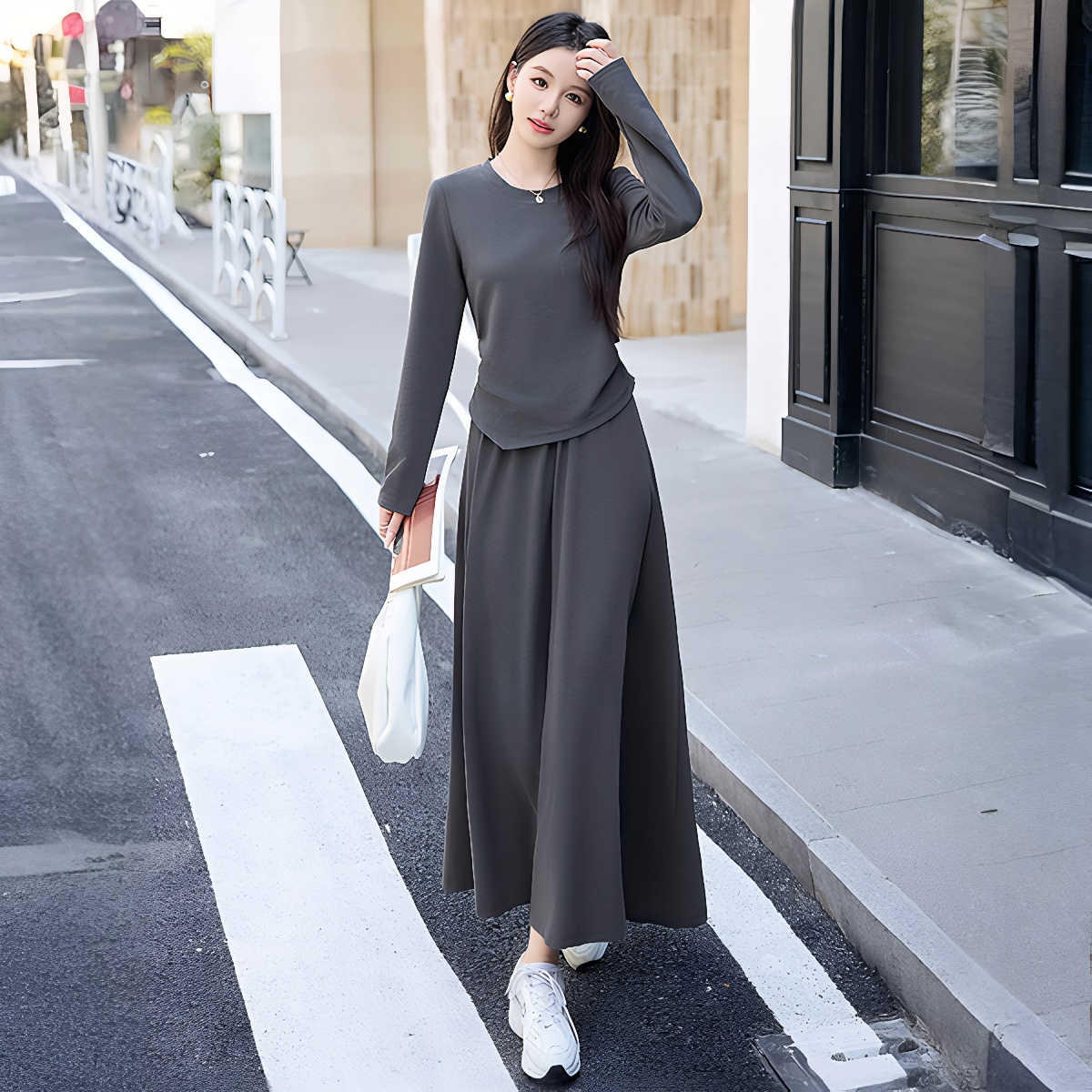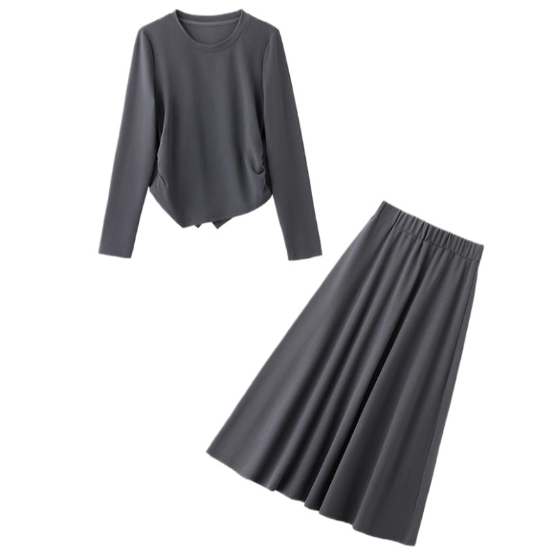 早春长袖法式休闲套装裙女新款气质收腰显瘦轻奢时尚两件套潮 服裝批發女裝批發服飾貨源