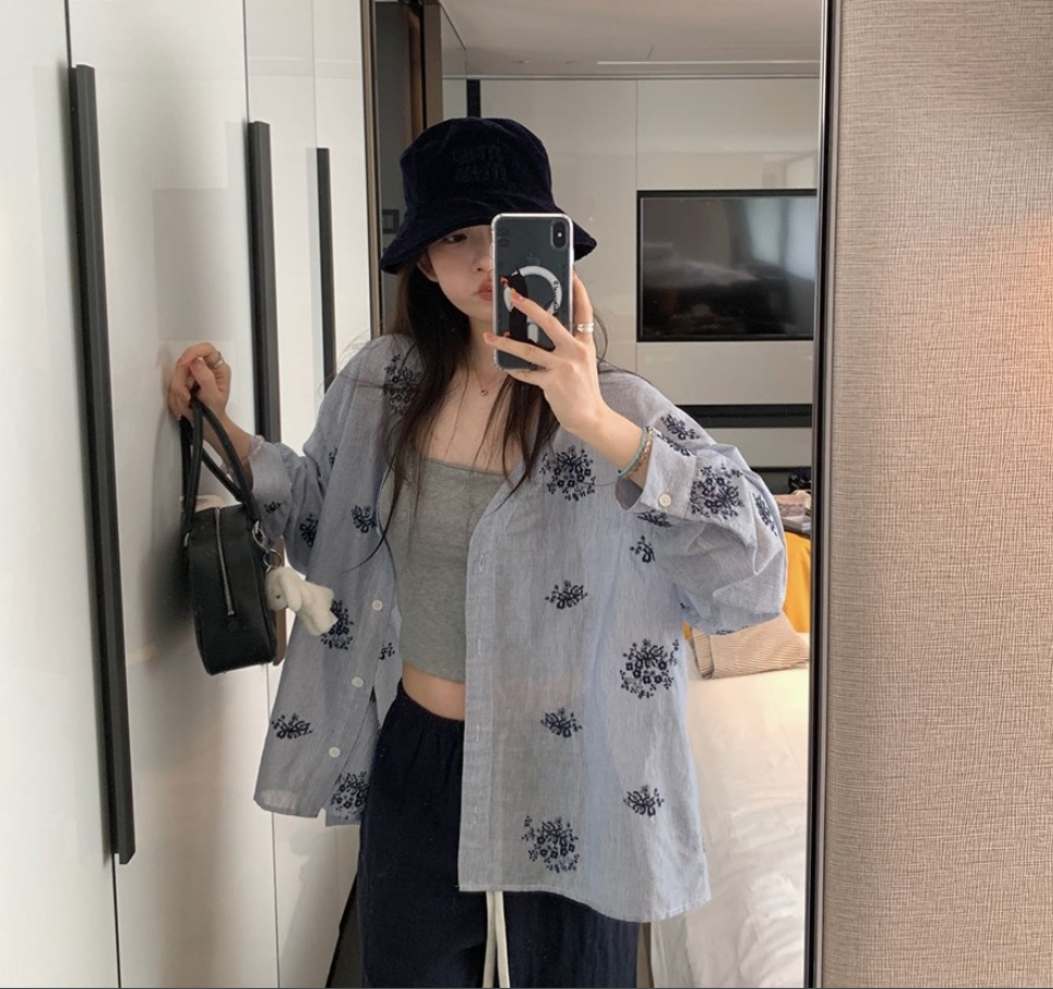 自制慵懒腔调重工刺绣V领宽松长袖衬衫 服裝批發女裝批發服飾貨源