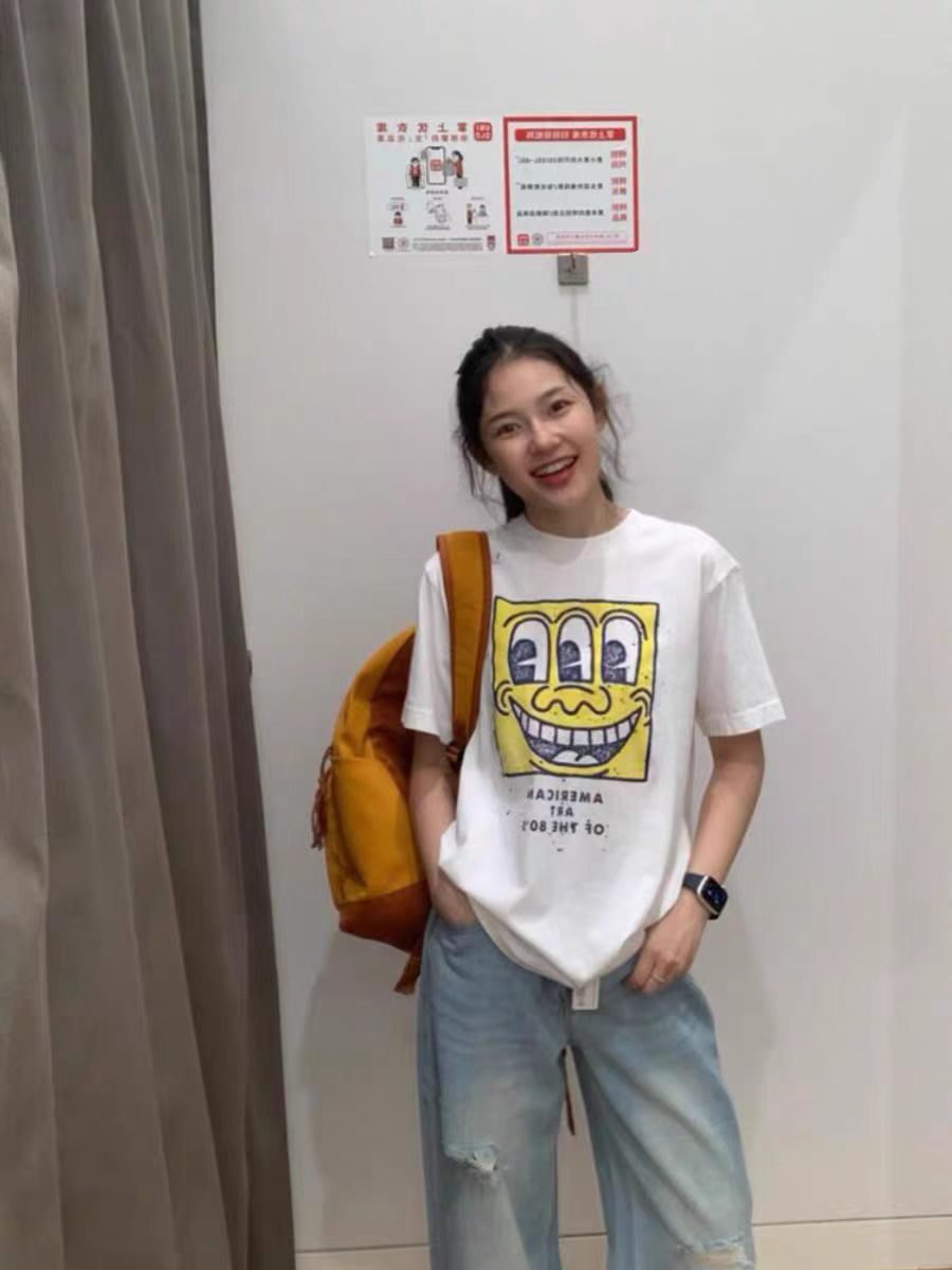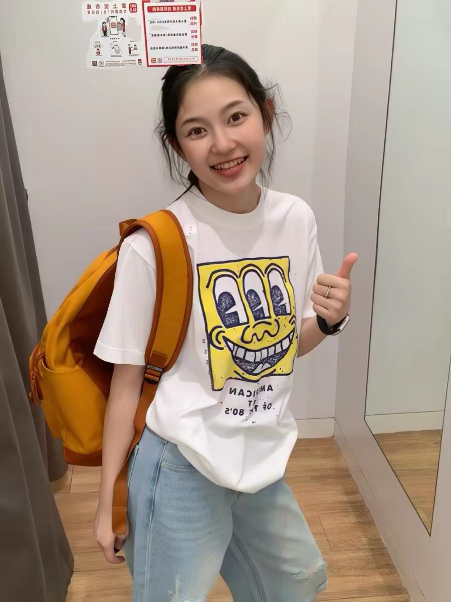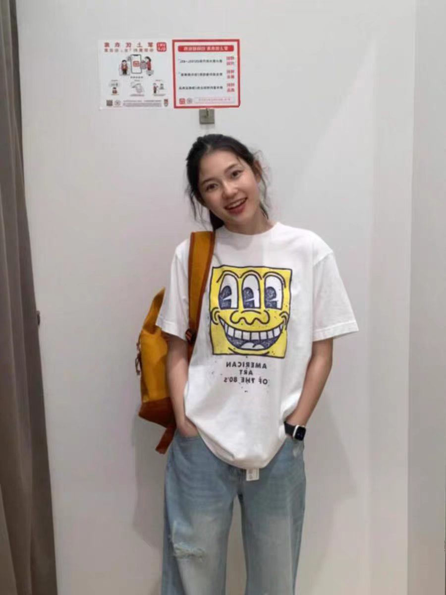 BY13199# 短袖t恤女夏季新款韩版宽松圆领休闲正肩印花上衣 服裝批發女裝批發服飾貨源