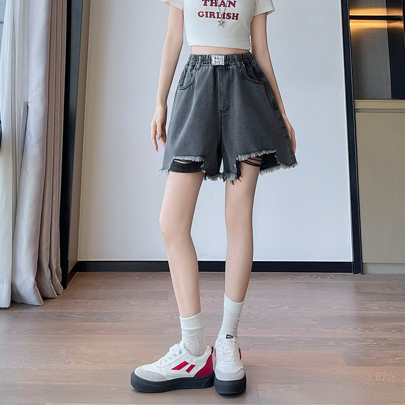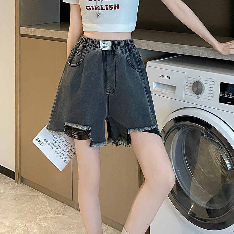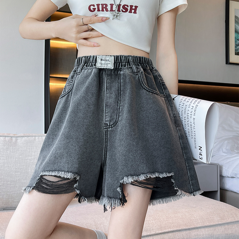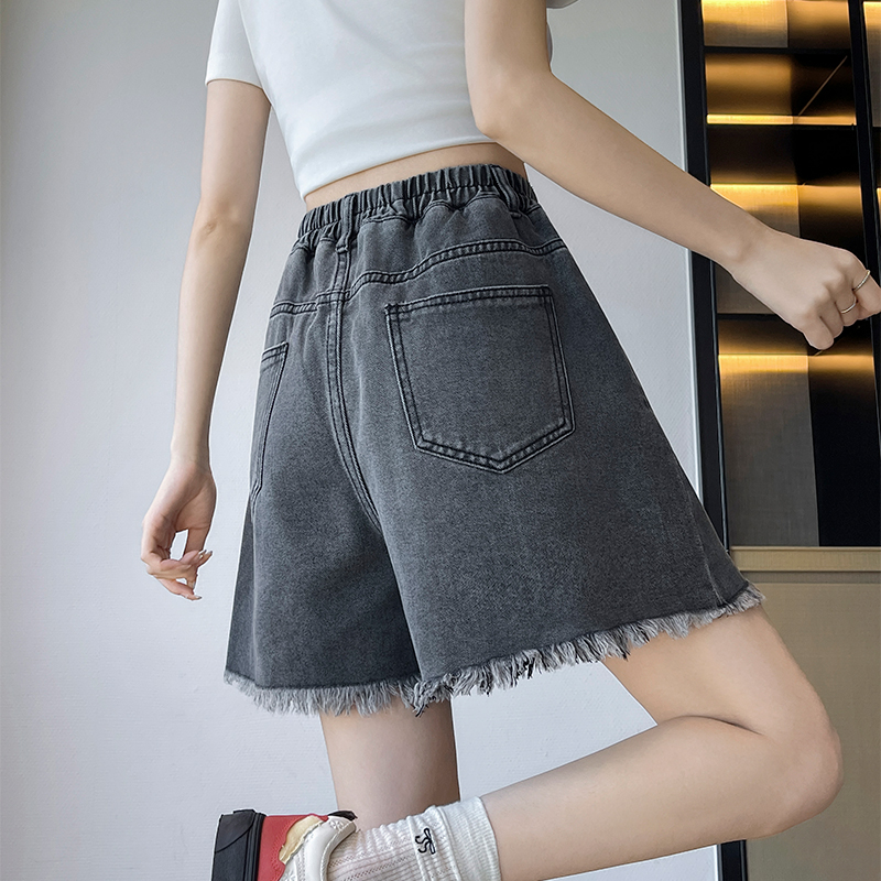 BY13351# 黑色牛仔短裤女宽松高腰阔腿毛边遮肉显瘦大码女装胖mm230斤 服裝批發女裝批發服飾貨源