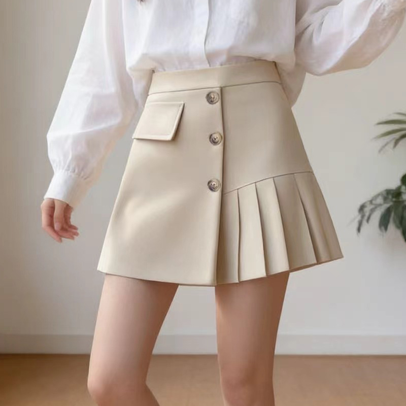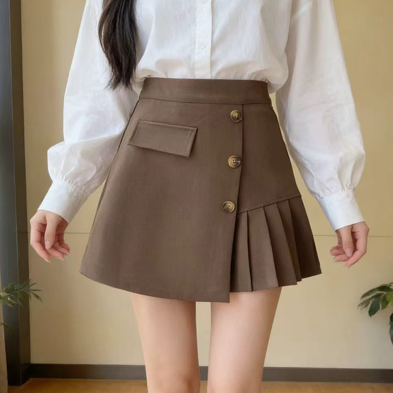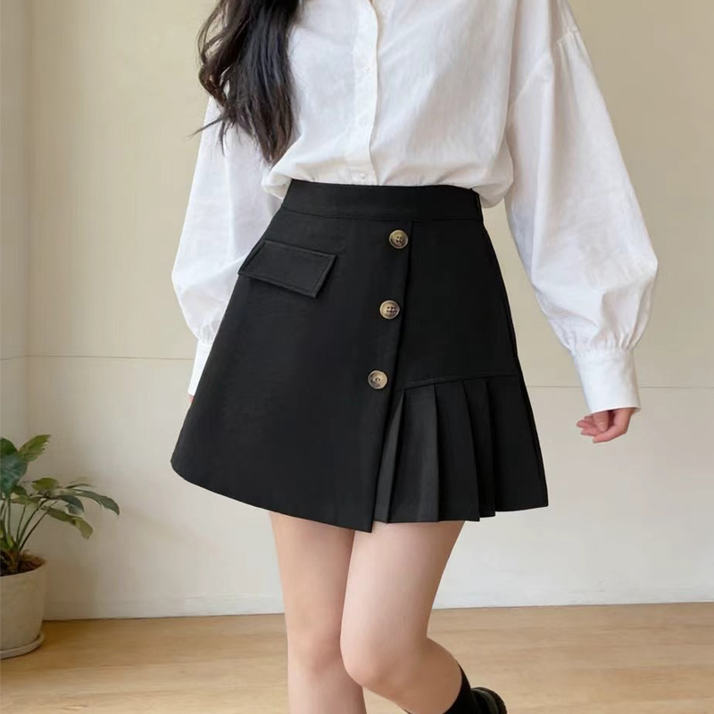 BY13371# 春夏新款高腰短裙显瘦黑色不规则裙子包臀a字裙百褶半身裤裙 服裝批發女裝批發服飾貨源