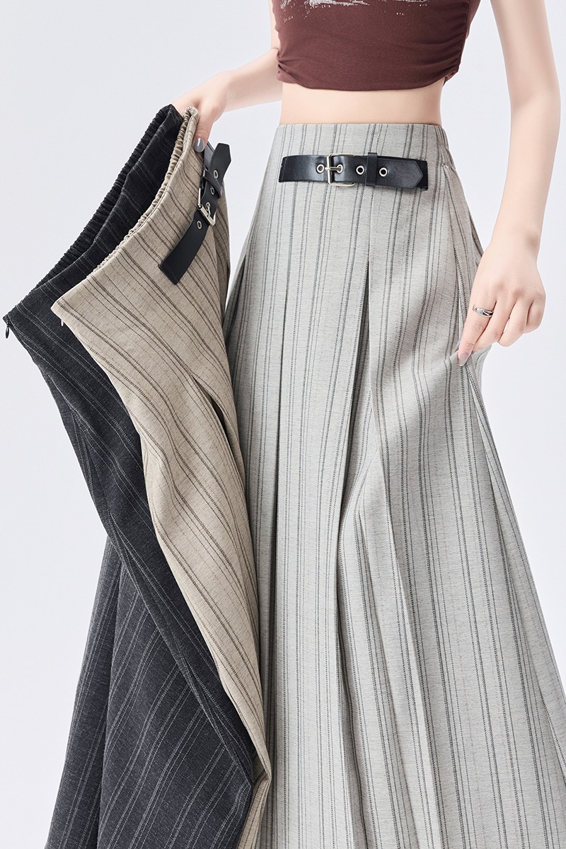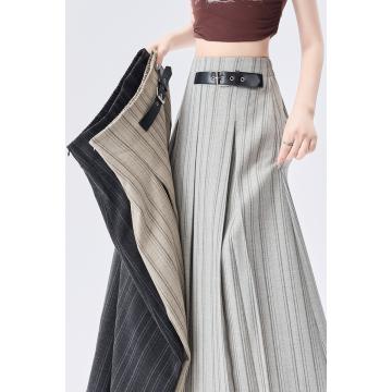 BY13448# 复古条纹高腰西装百褶裙女春夏气质百搭a字长裙今年超火半身裙子 服裝批發女裝批發服飾貨源