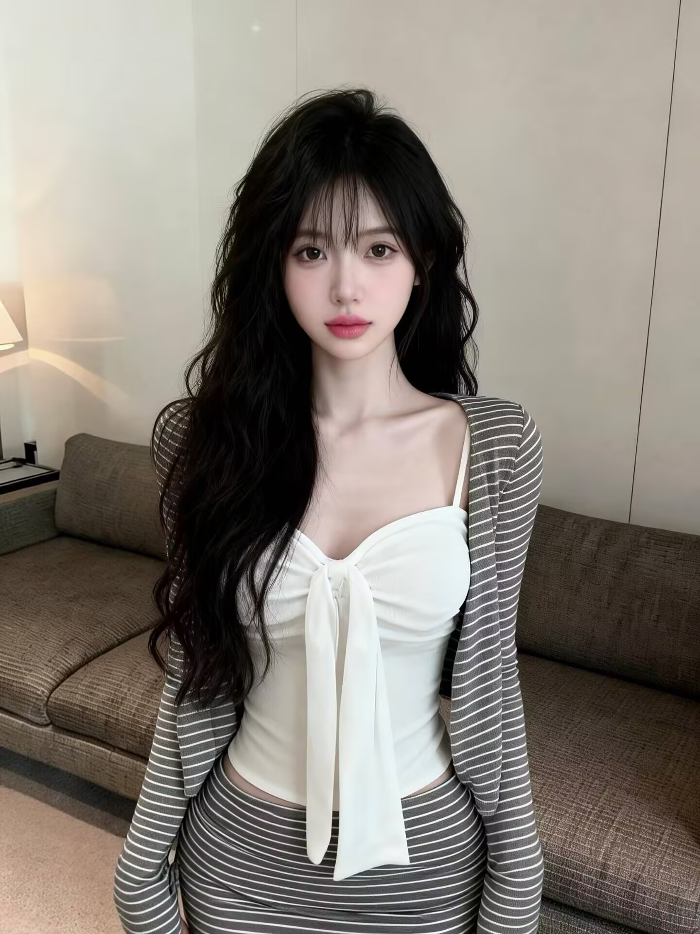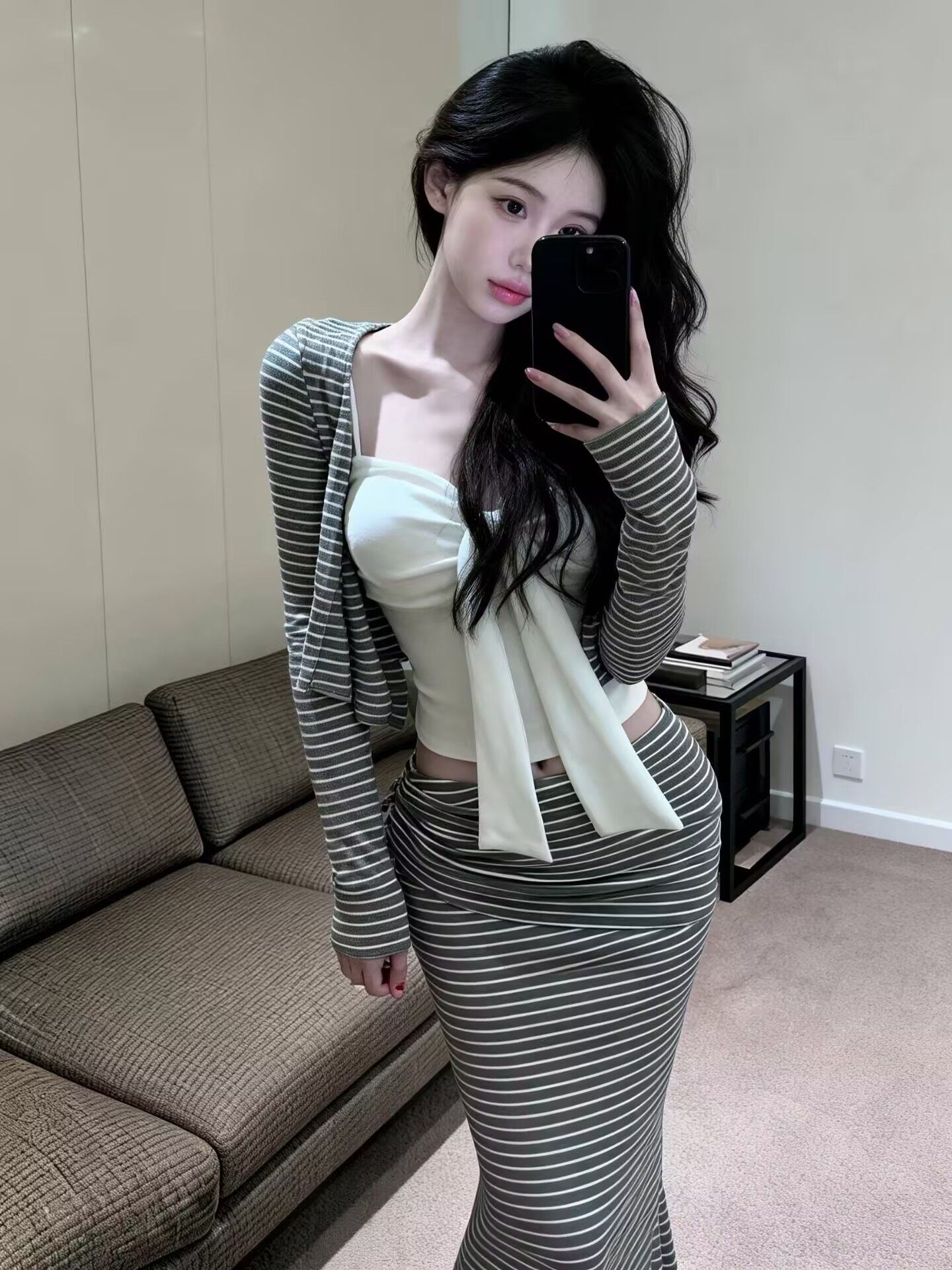 BY13466# 新款蝴蝶结吊带+显瘦遮肉开衫+设计感条纹三件套女 服裝批發女裝批發服飾貨源