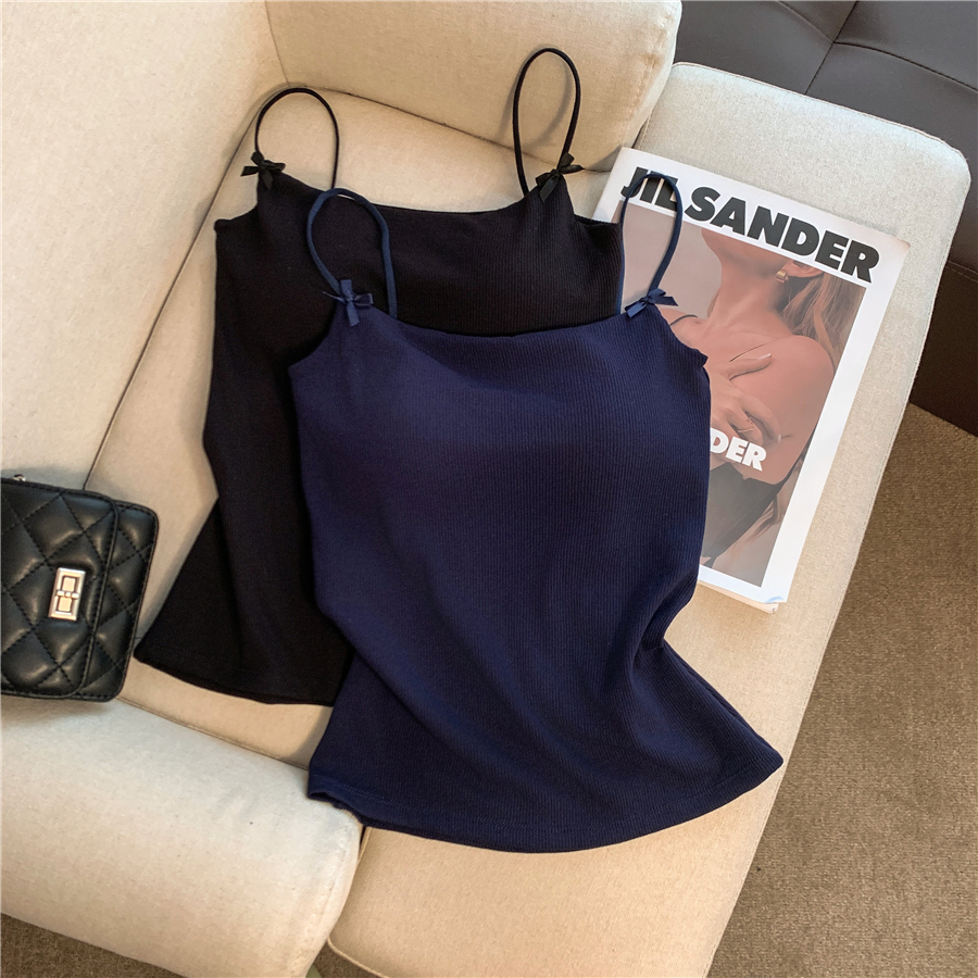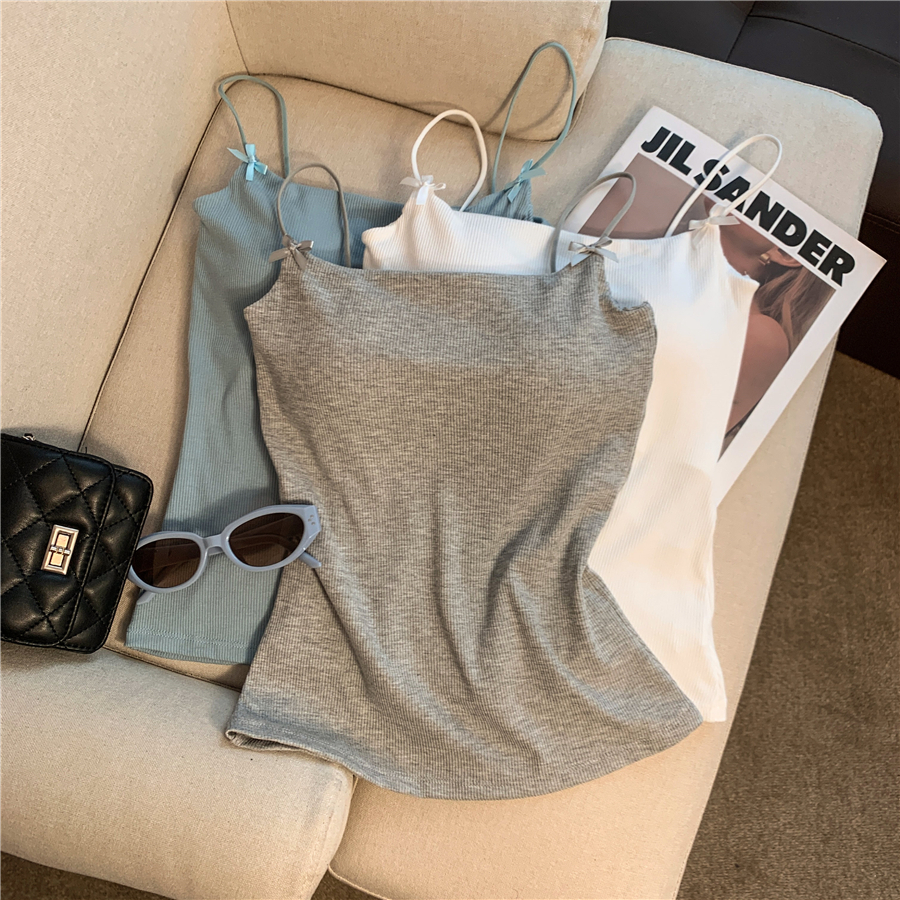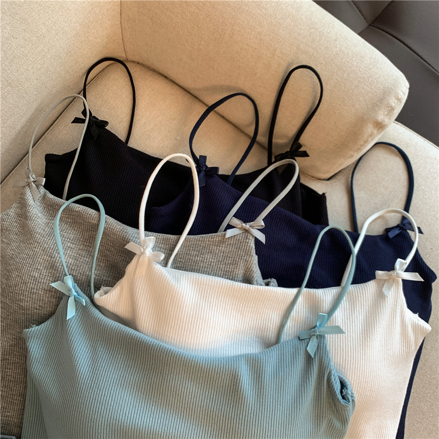 BY13475# 不减韩系纯欲蝴蝶结吊带背心女带胸垫百搭显瘦高弹无袖上衣 服裝批發女裝批發服飾貨源