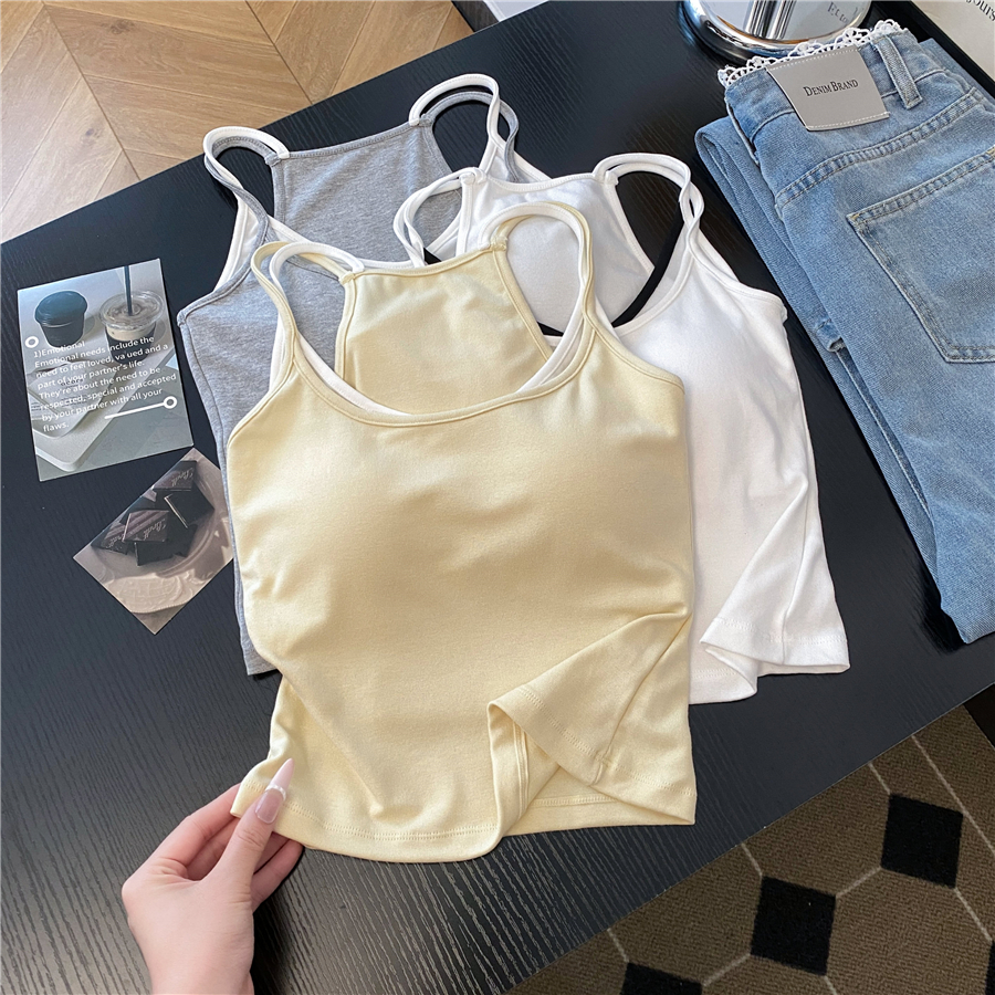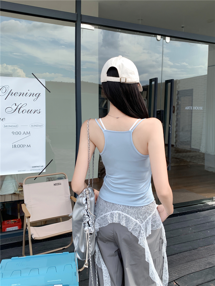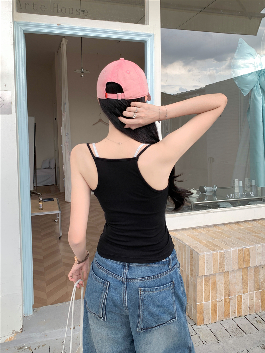 BY13476# 不减韩系假两件吊带背心女带胸垫内搭外穿休闲显瘦无袖上衣 服裝批發女裝批發服飾貨源
