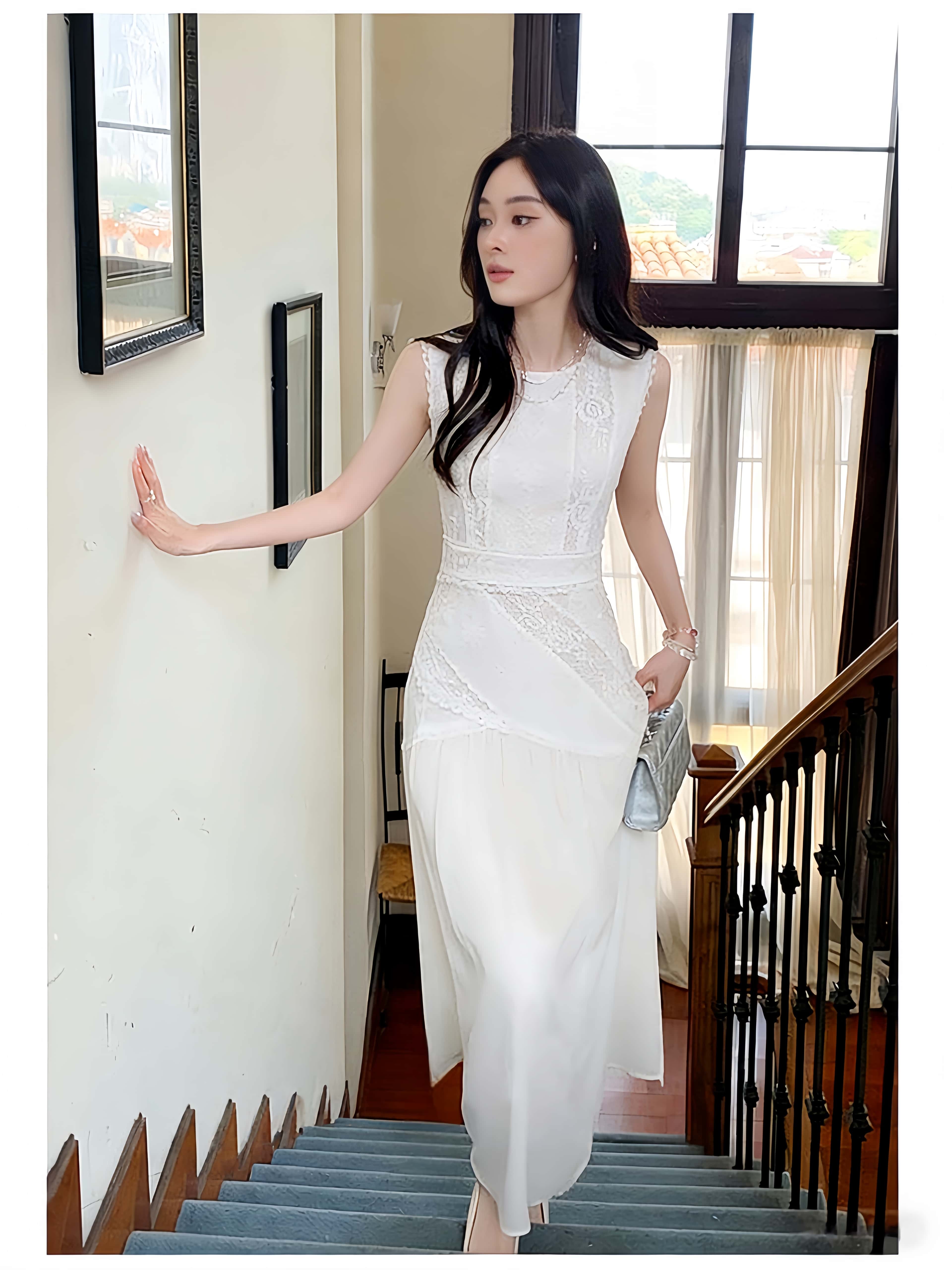 首页 > 短袖连衣裙、夜店装 > BY15170# 法式高级气质无袖连衣裙夏季新款长裙背心拼接蕾丝高级感裙子 服裝批發女裝批發服飾貨源