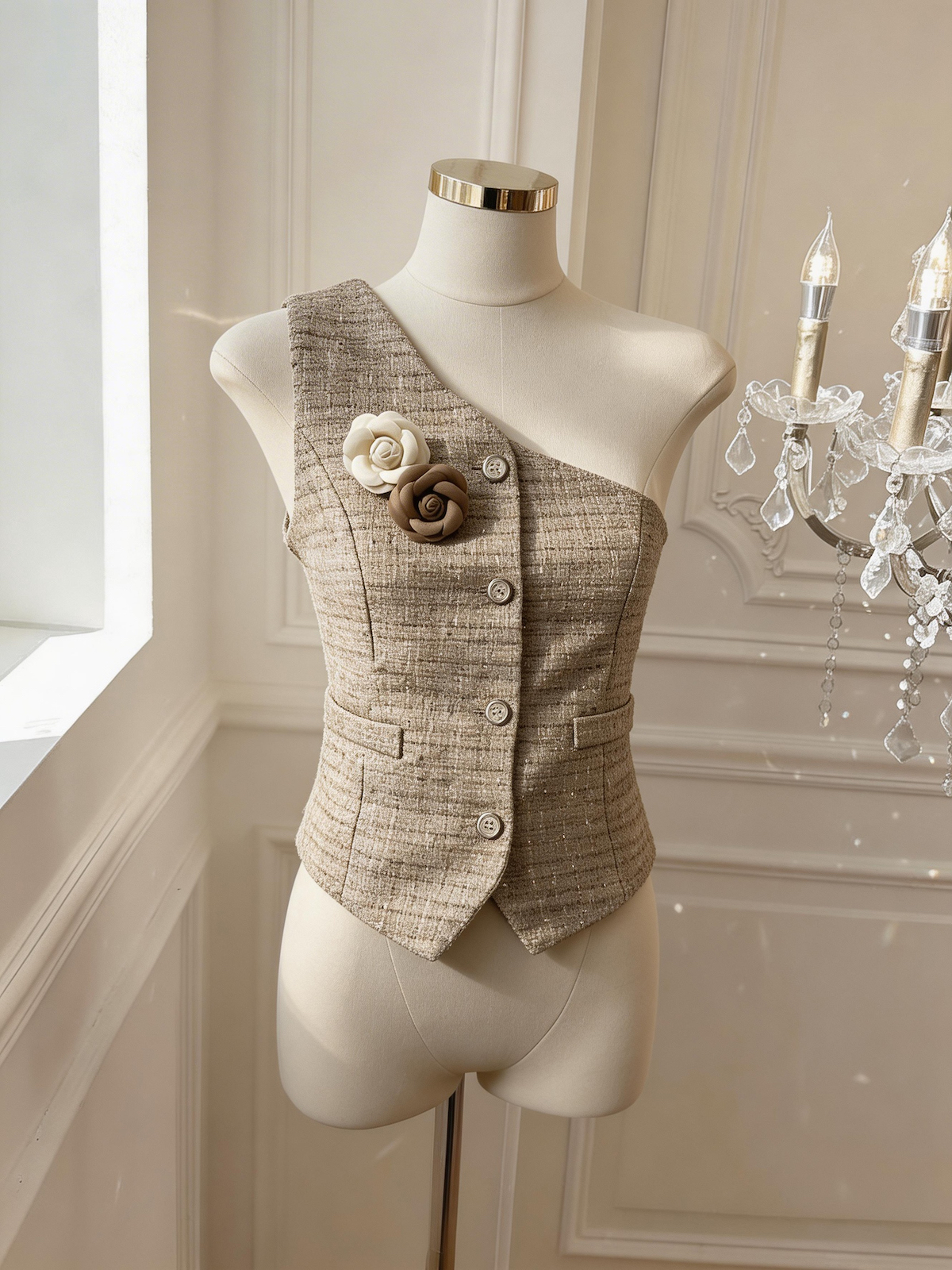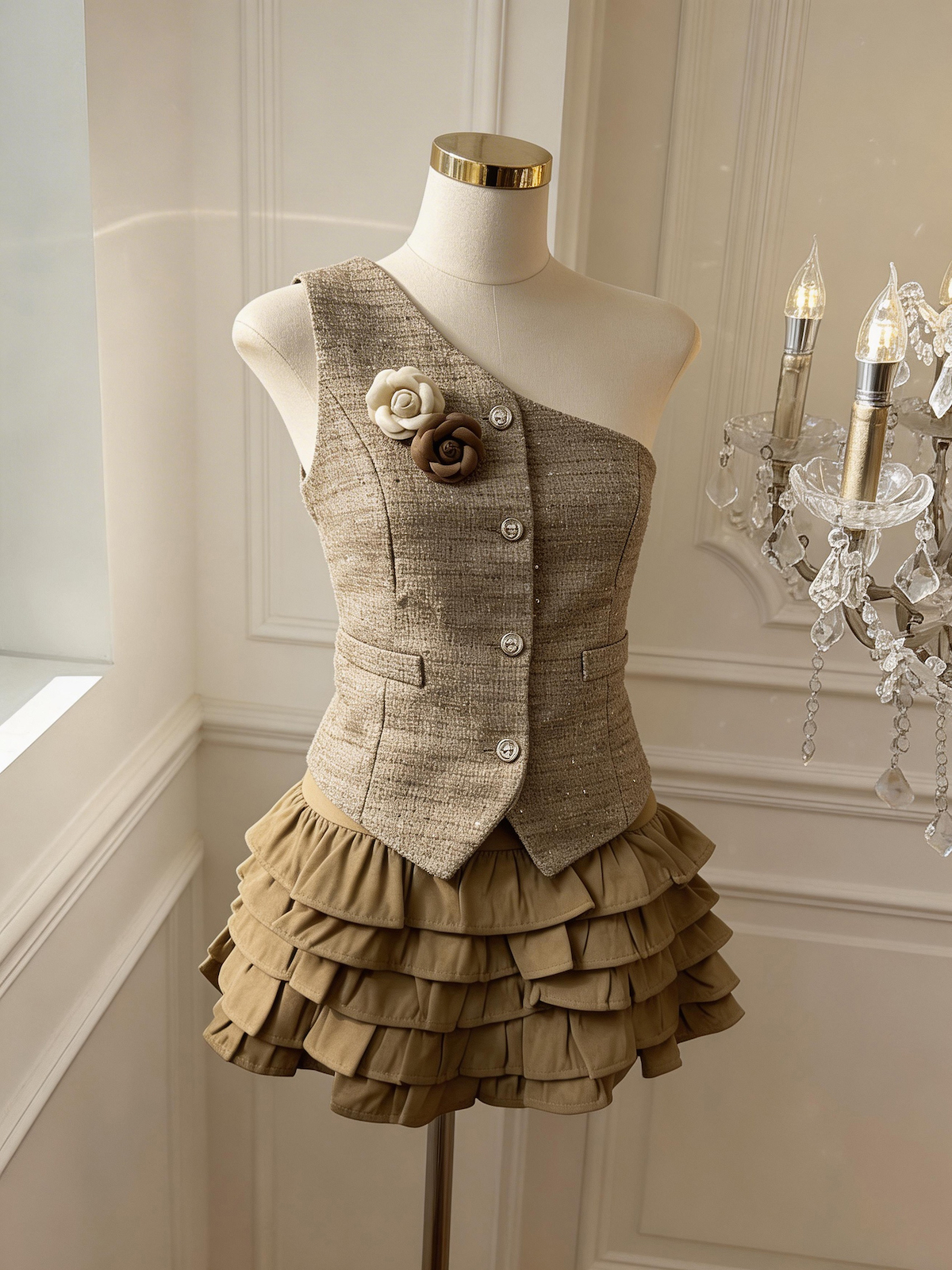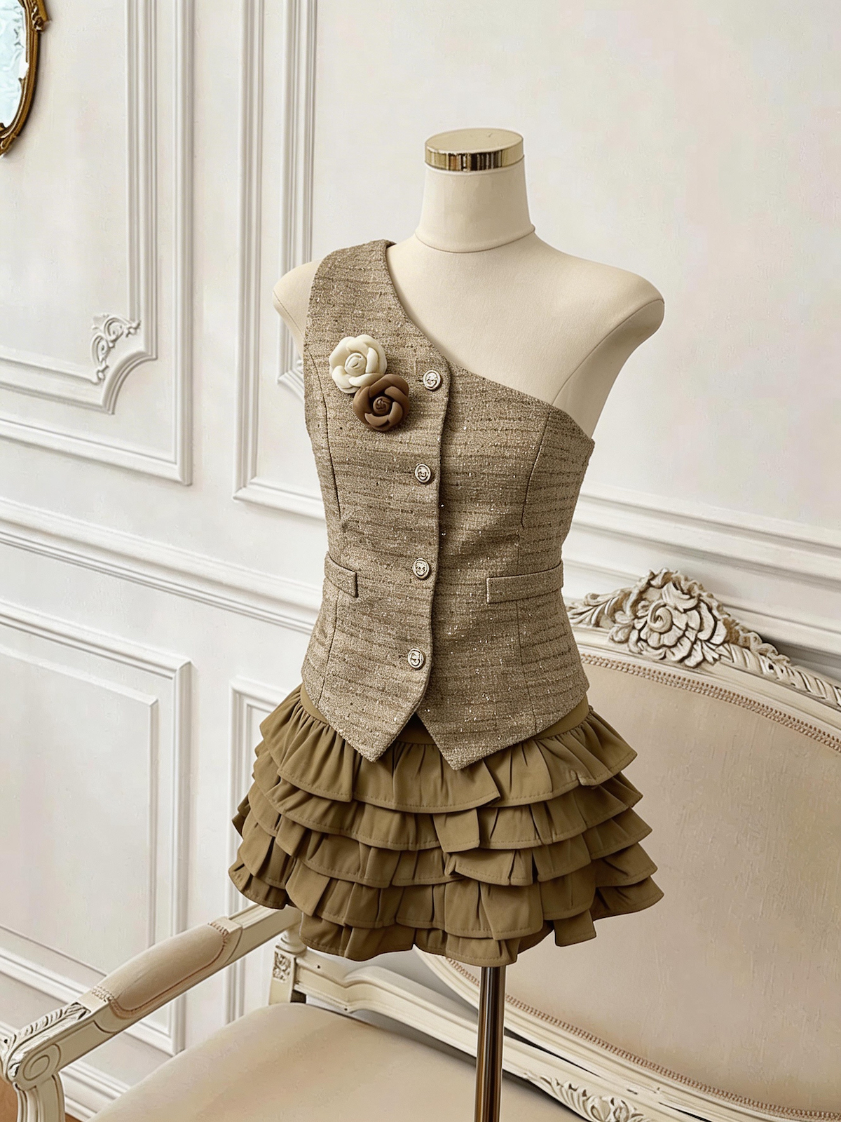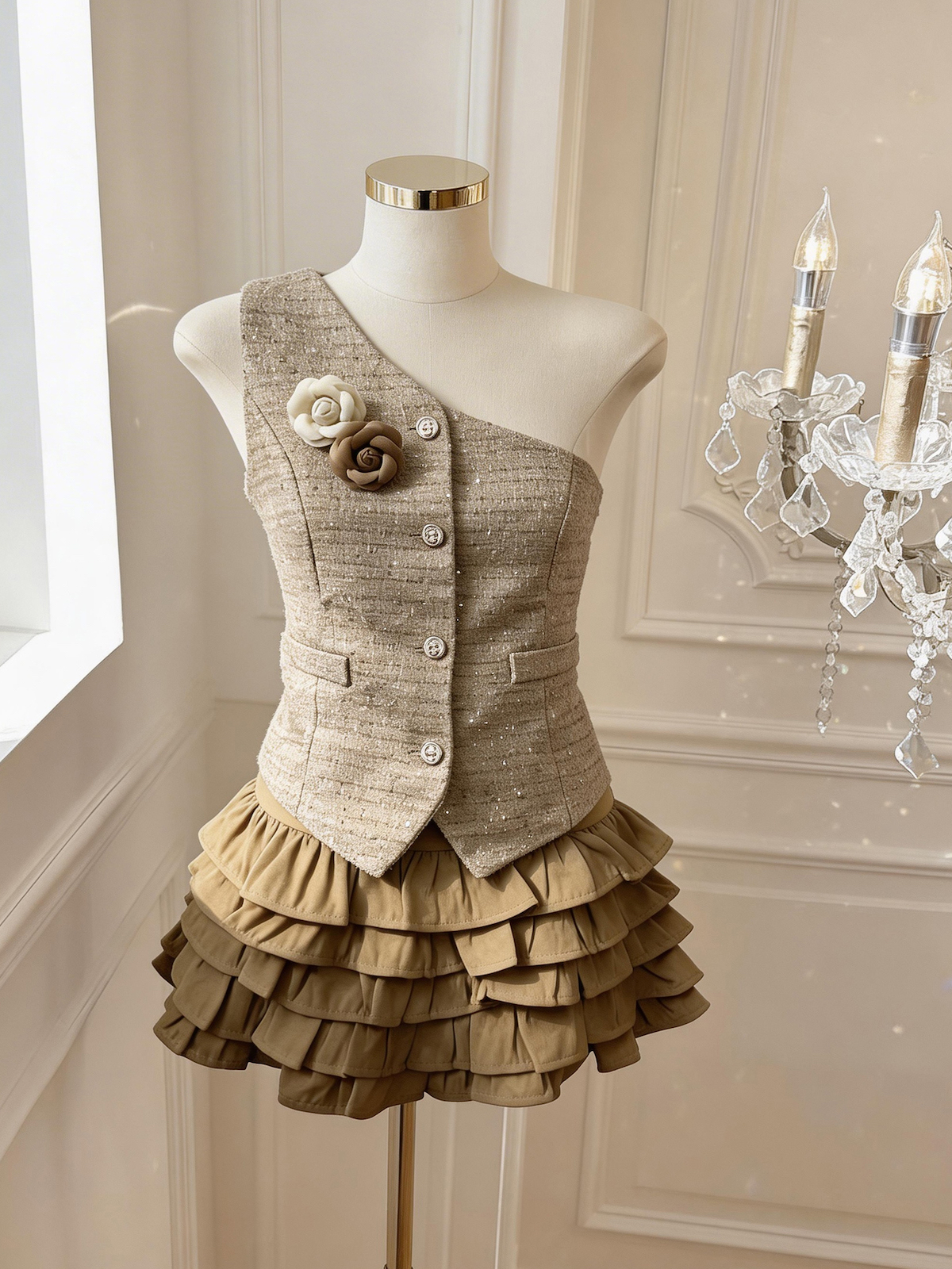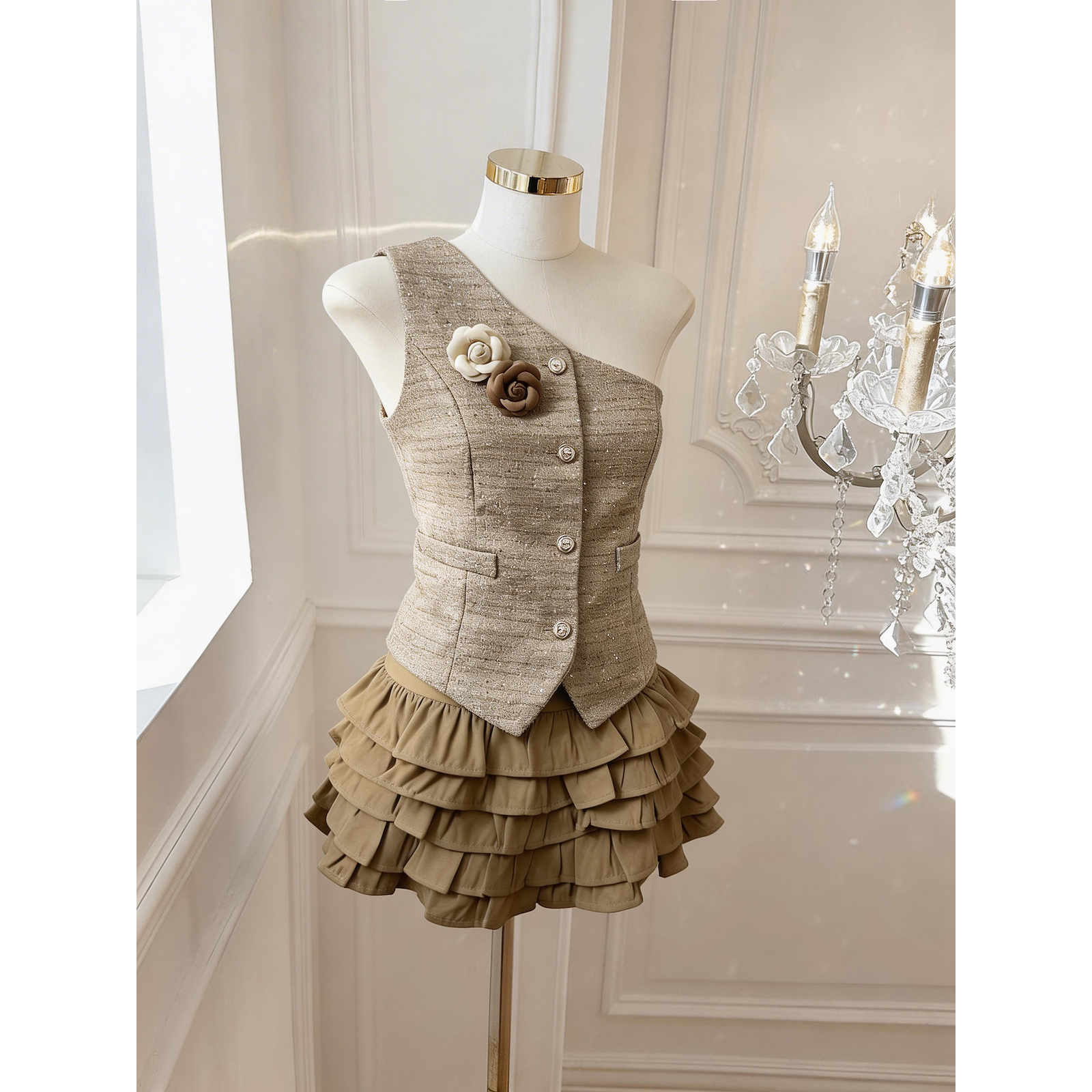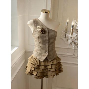 BY15797# 法式辣妹小香风挂脖马甲蛋糕裙套装纯欲风显瘦两件套 服裝批發女裝批發服飾貨源