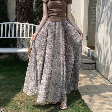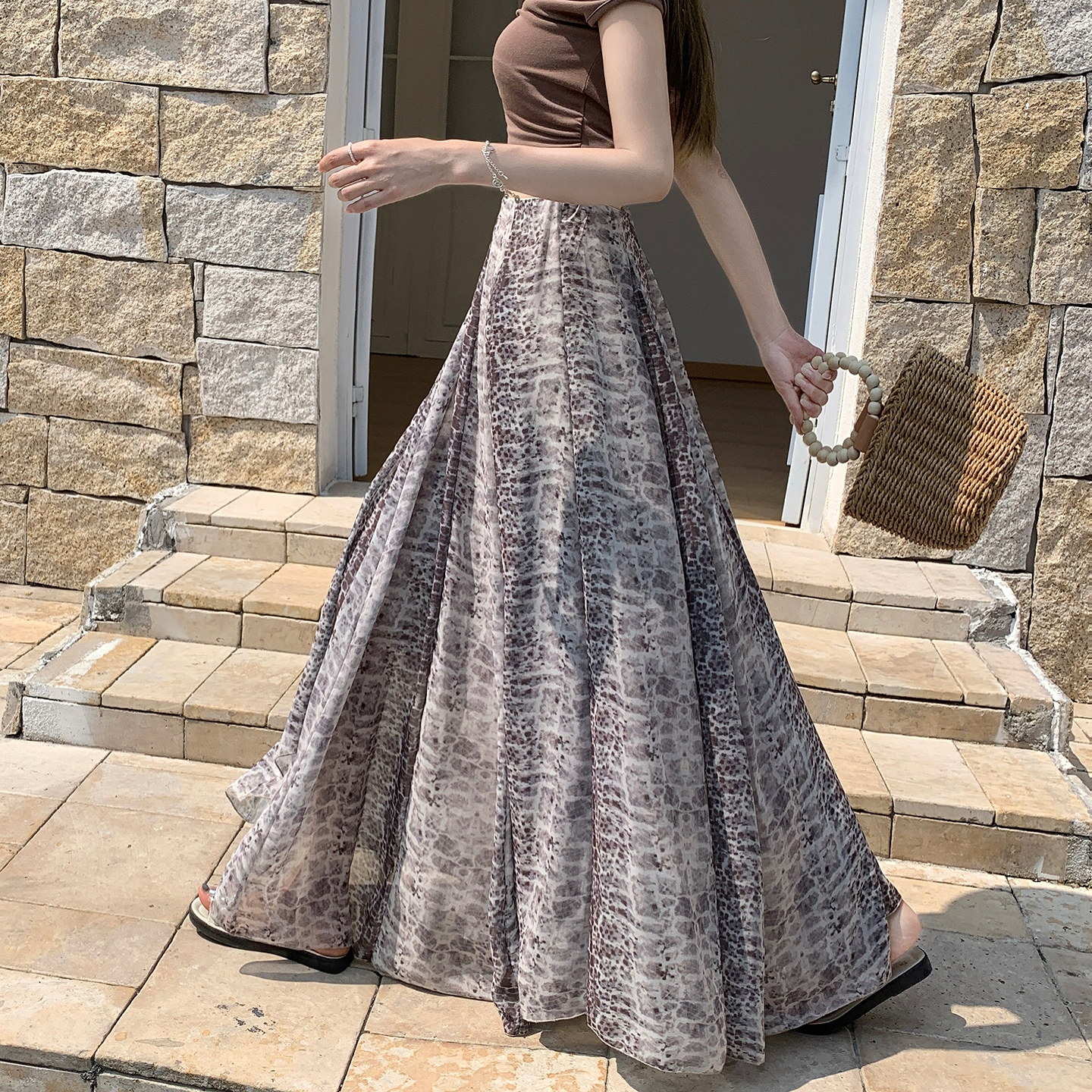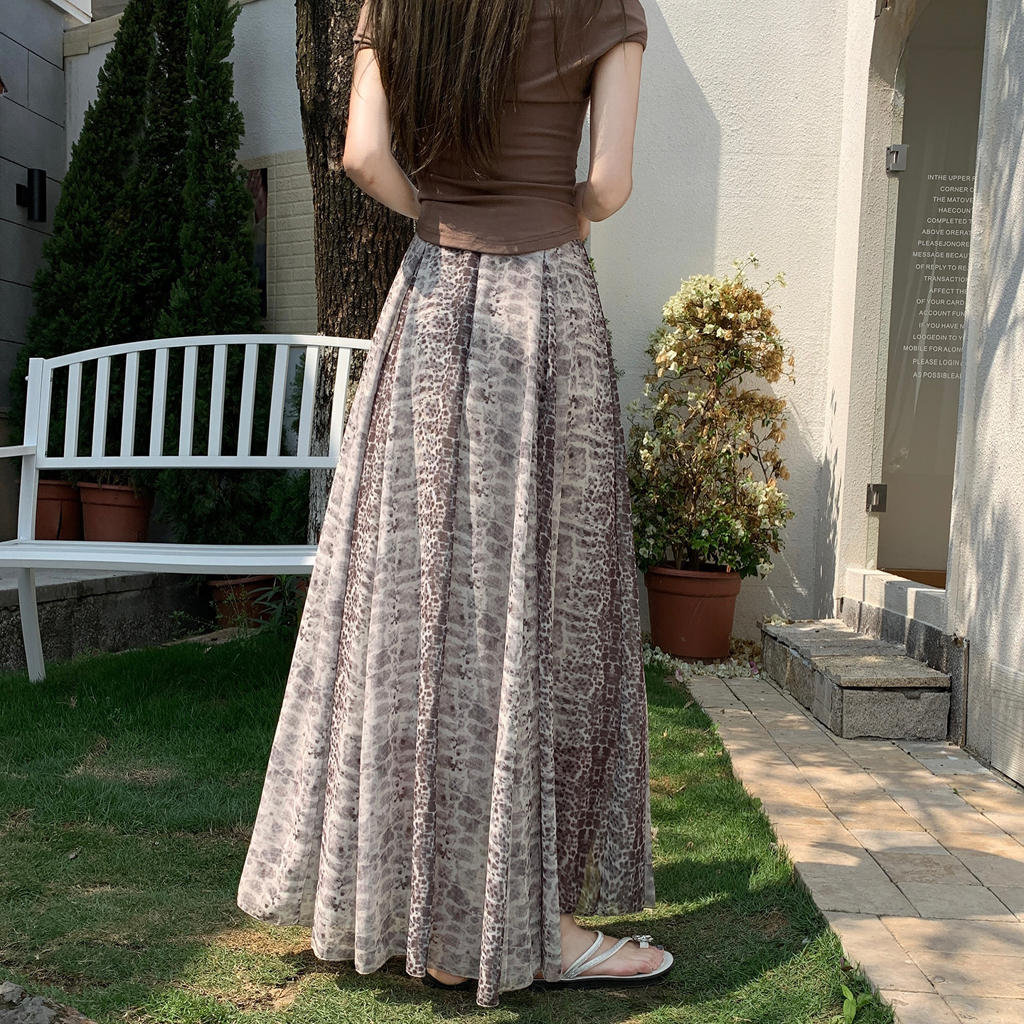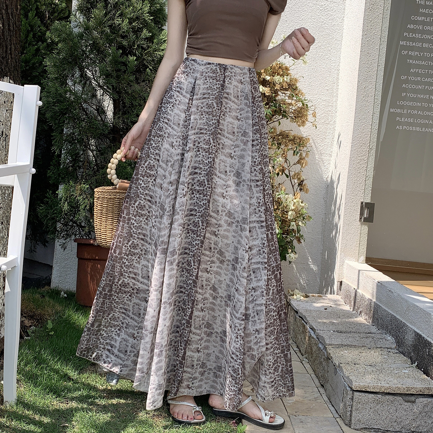 BY15841# 美拉德风纯欲豹纹松紧腰半身裙女夏季新款复古时髦A字中长裙 服裝批發女裝批發服飾貨源