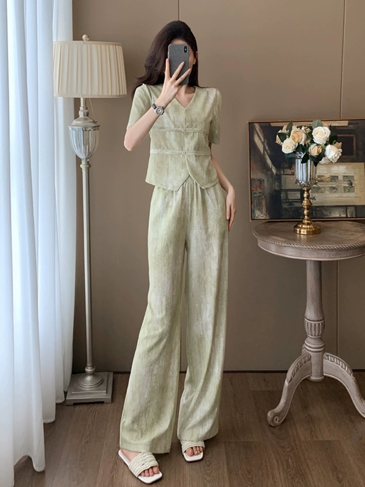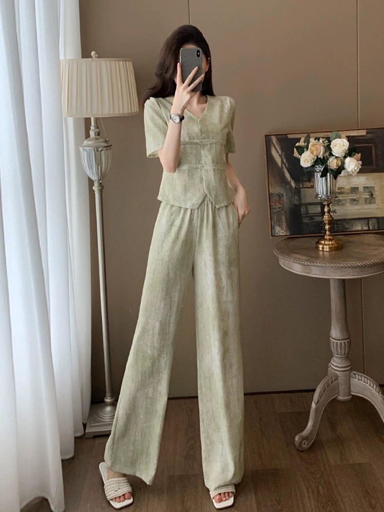 首页 > 韩版套装 > 休闲时尚运动套装女夏季显瘦减龄洋气新中式国风短袖阔腿裤两件套 服裝批發女裝批發服飾貨源
