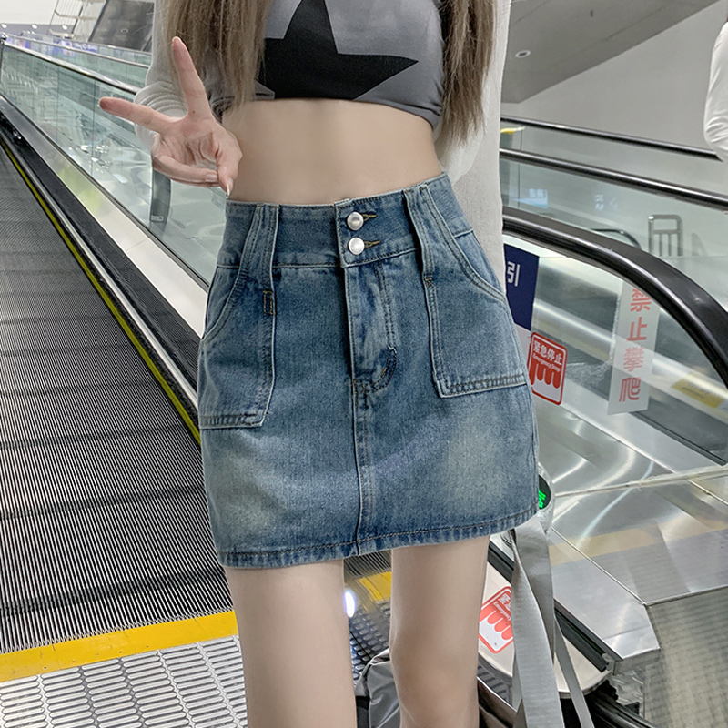 Home > 短裤、半身裙 > BY17144# 双扣短裙ins风复古半身裙女高腰a字防走光设计感小个子包臀牛仔裙 服裝批發女裝批發服飾貨源