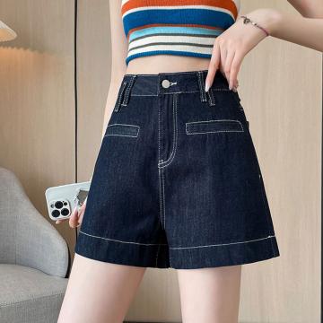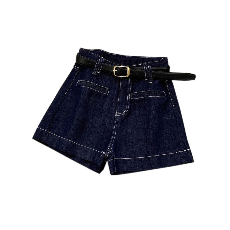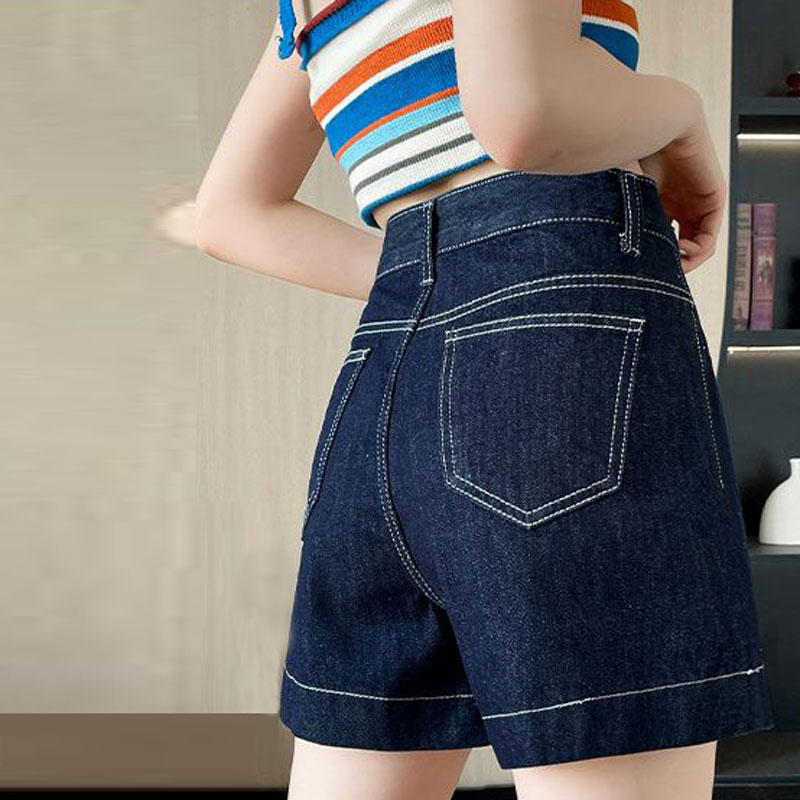 宁蓝牛仔短裤女薄款大码胖mm直筒高腰宽松a字明线阔腿热裤子夏 服裝批發女裝批發服飾貨源