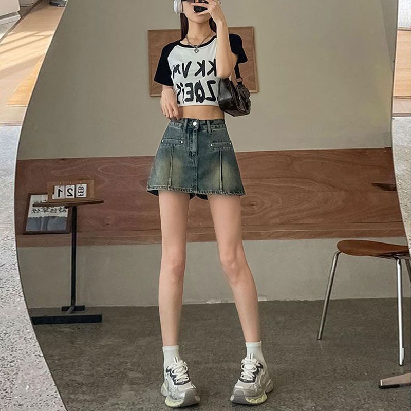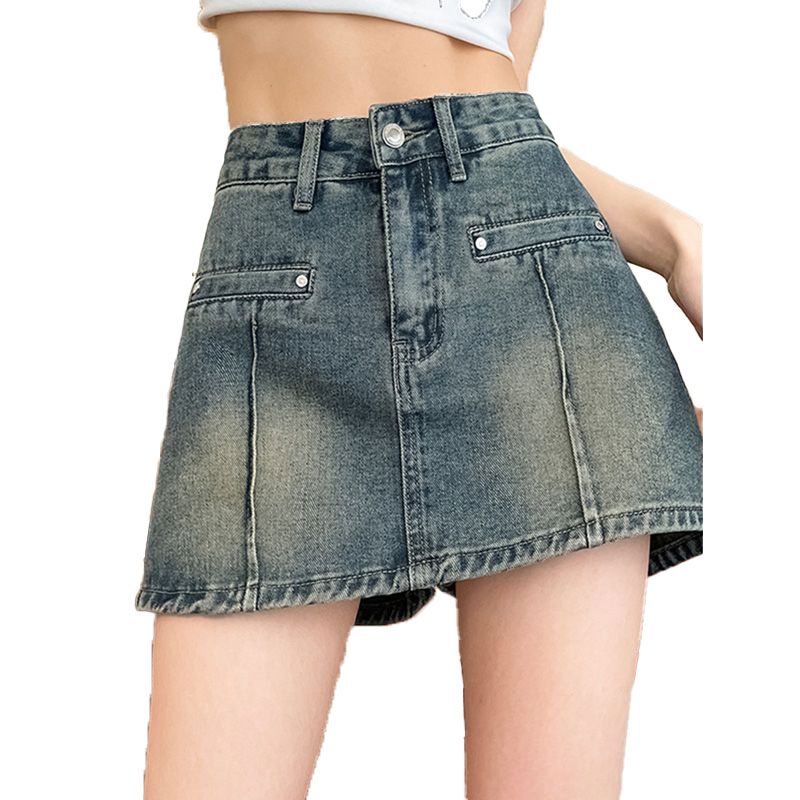 胖mm梨型设计感牛仔短裤女夏季新款大码A字包臀裙裤高腰半身裙子 服裝批發女裝批發服飾貨源