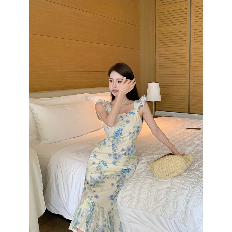 海边度假碎花飞飞袖连衣裙茶歇法式裙子女夏季美式时髦清新文艺潮 服裝批發女裝批發服飾貨源