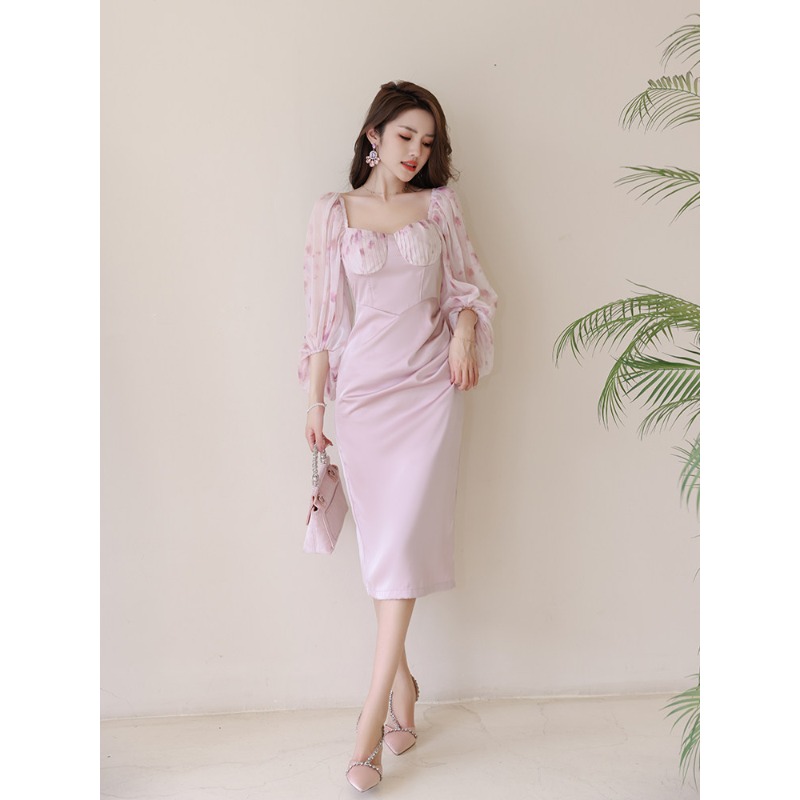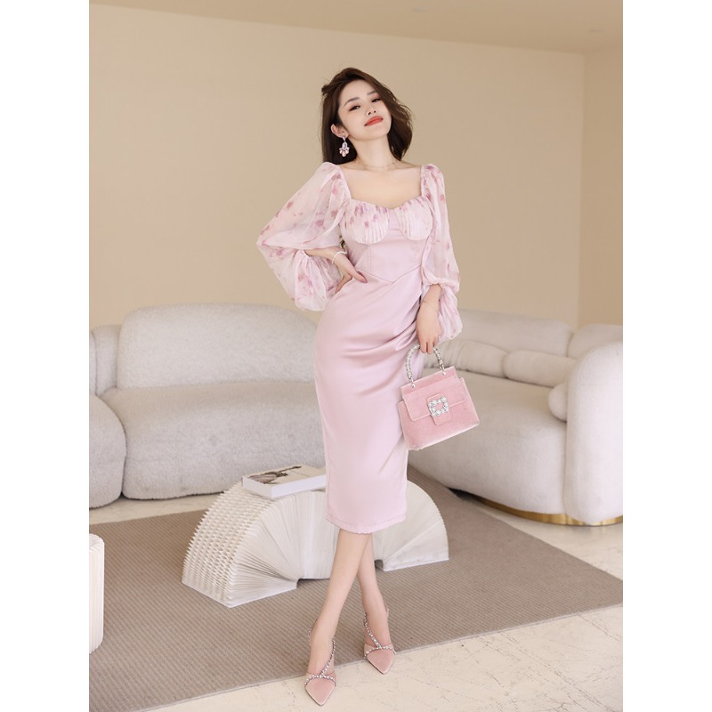 慵懒风长袖漂亮显瘦裙子初恋小众设计茶歇减龄轻熟泡泡袖连衣裙女 服裝批發女裝批發服飾貨源