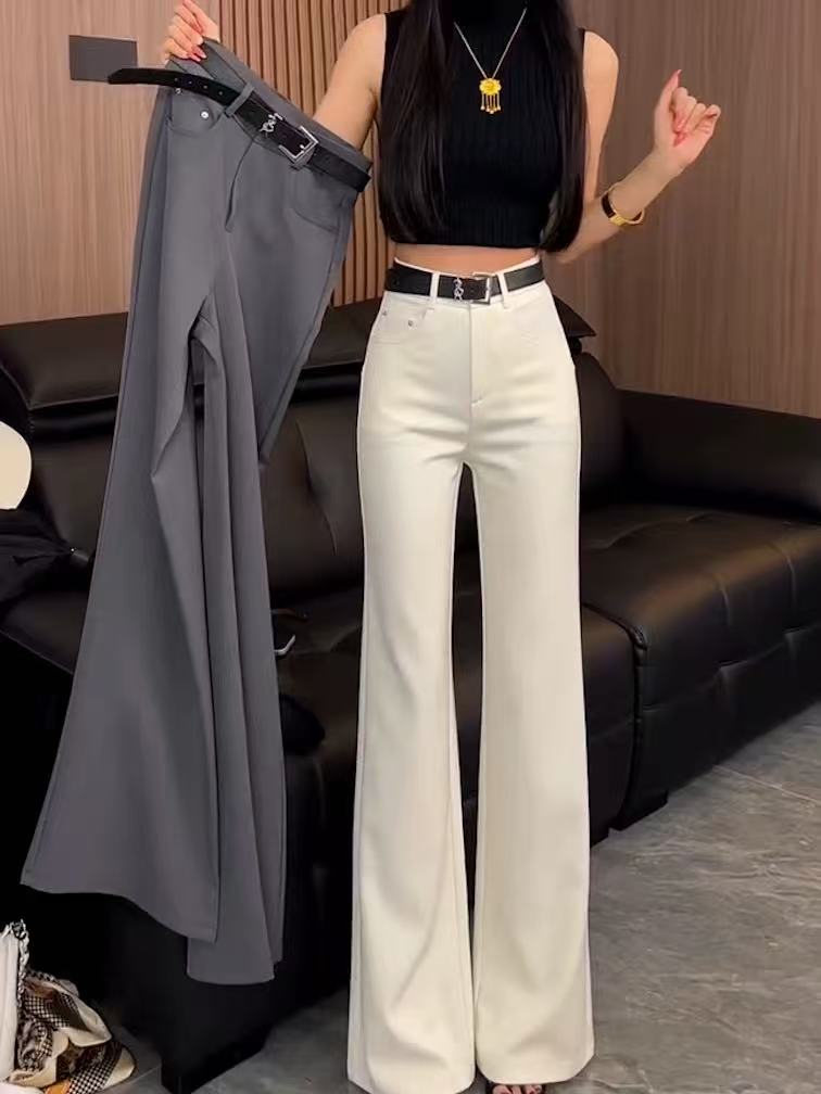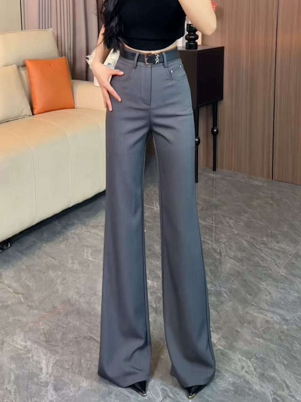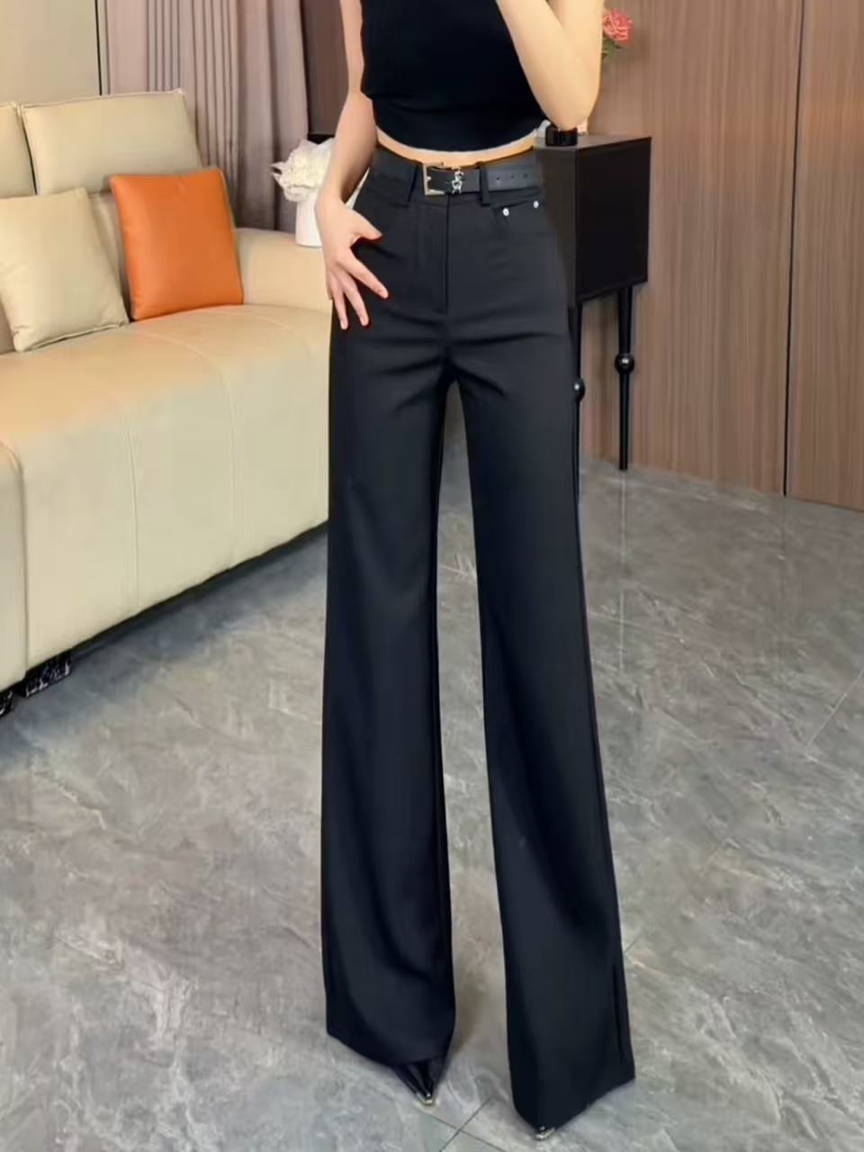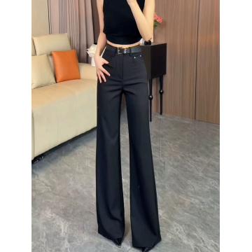 BY17899# 黑色高腰宽松显瘦西装阔腿裤女夏季新款垂感慵懒休闲直筒裤 服裝批發女裝批發服飾貨源