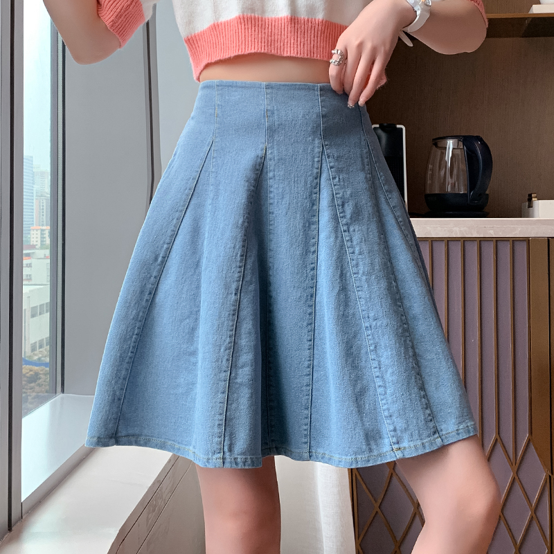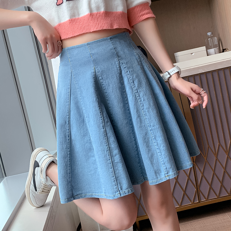 BY17903# 蓝色牛仔半身裙女春夏季新款a字短裙裤百褶女小个子伞裙子 服裝批發女裝批發服飾貨源
