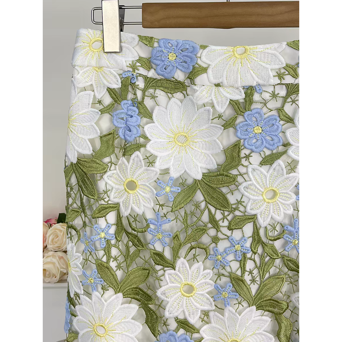 BY17948# 碎花半身裙女夏新款直筒半裙蕾丝刺绣修身长裙设计感镂空气质裙子 服裝批發女裝批發服飾貨源