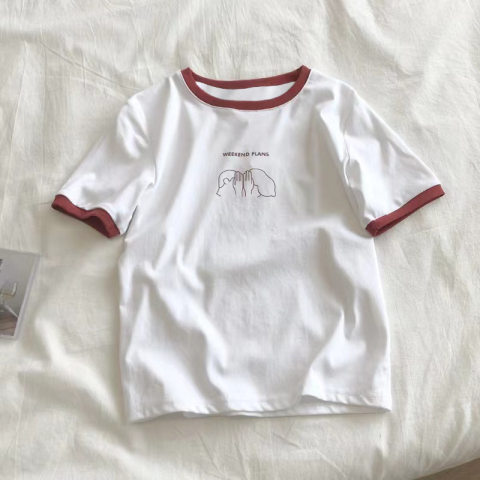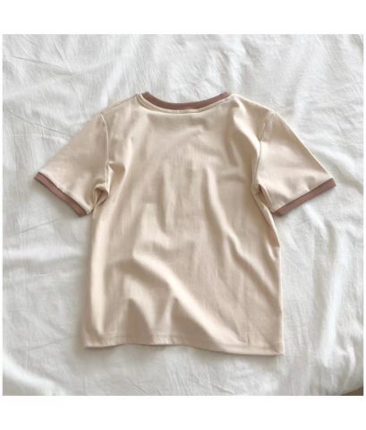 BY18024# 跨境外贸复古短袖t恤女夏天修身韩版百搭半截袖日系韩风chic上衣 服裝批發女裝批發服飾貨源