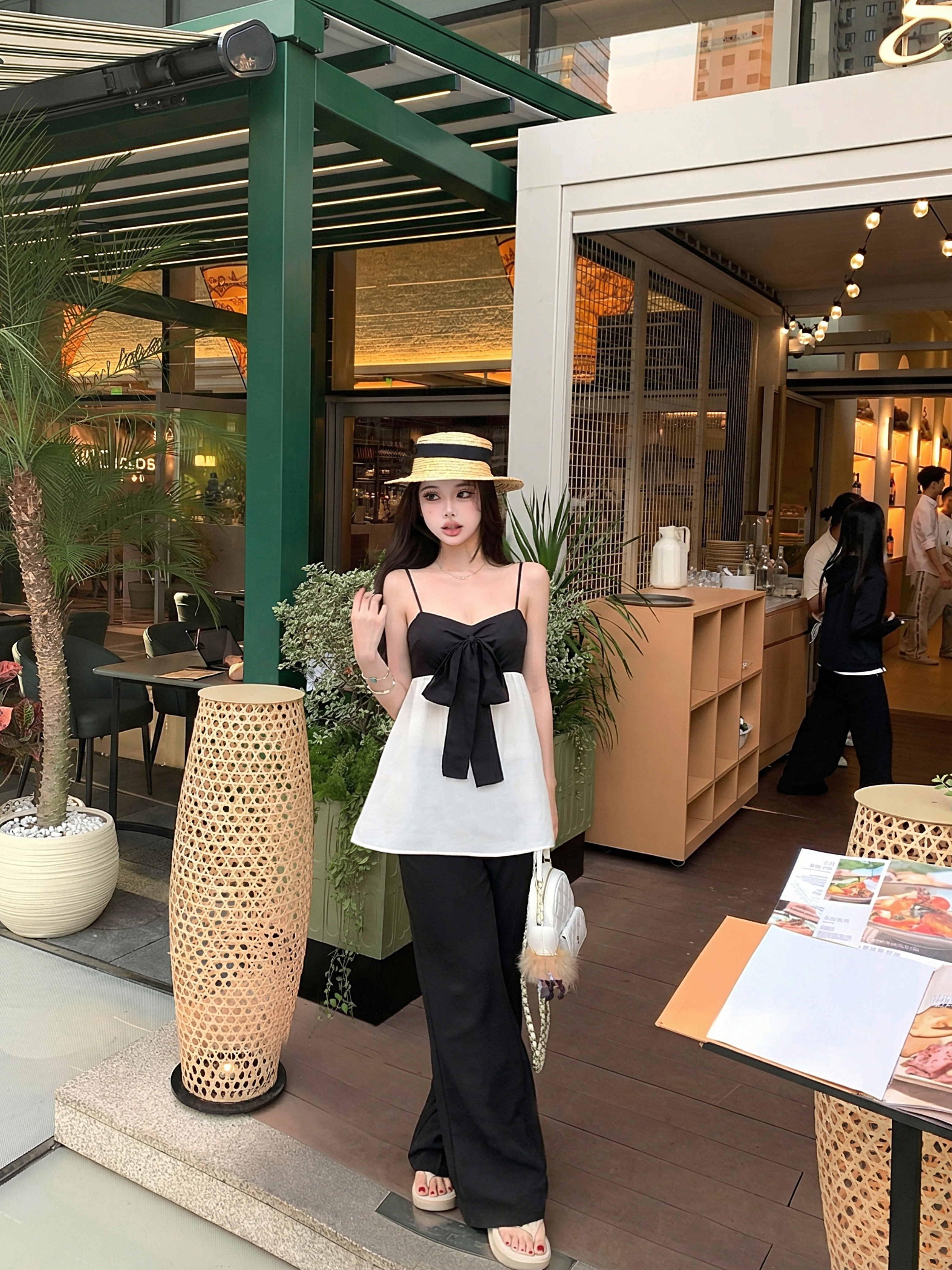 BY18063# 钰桐轻奢山茶香氛小香风真丝缎面撞色拼接蝴蝶结吊带女 服裝批發女裝批發服飾貨源
