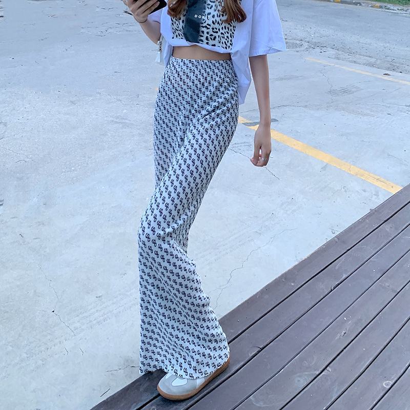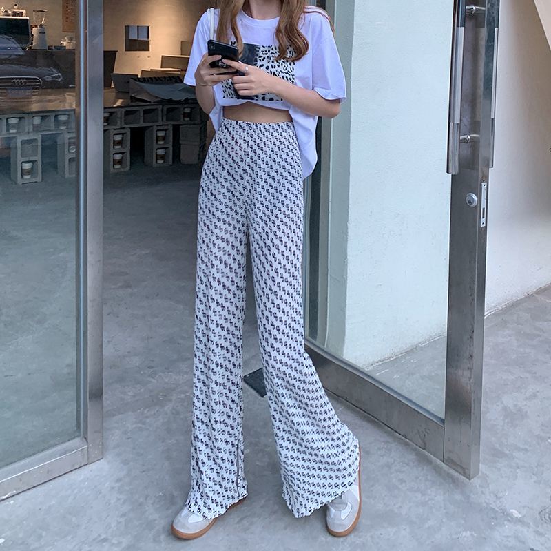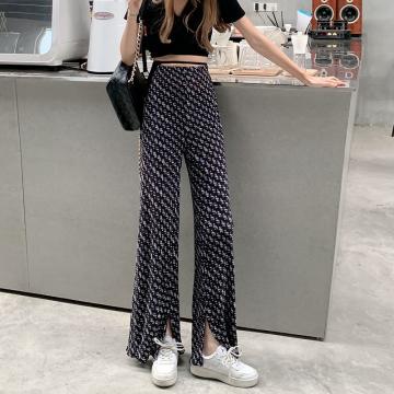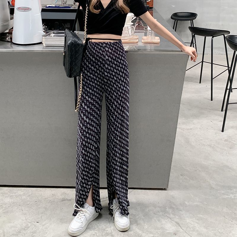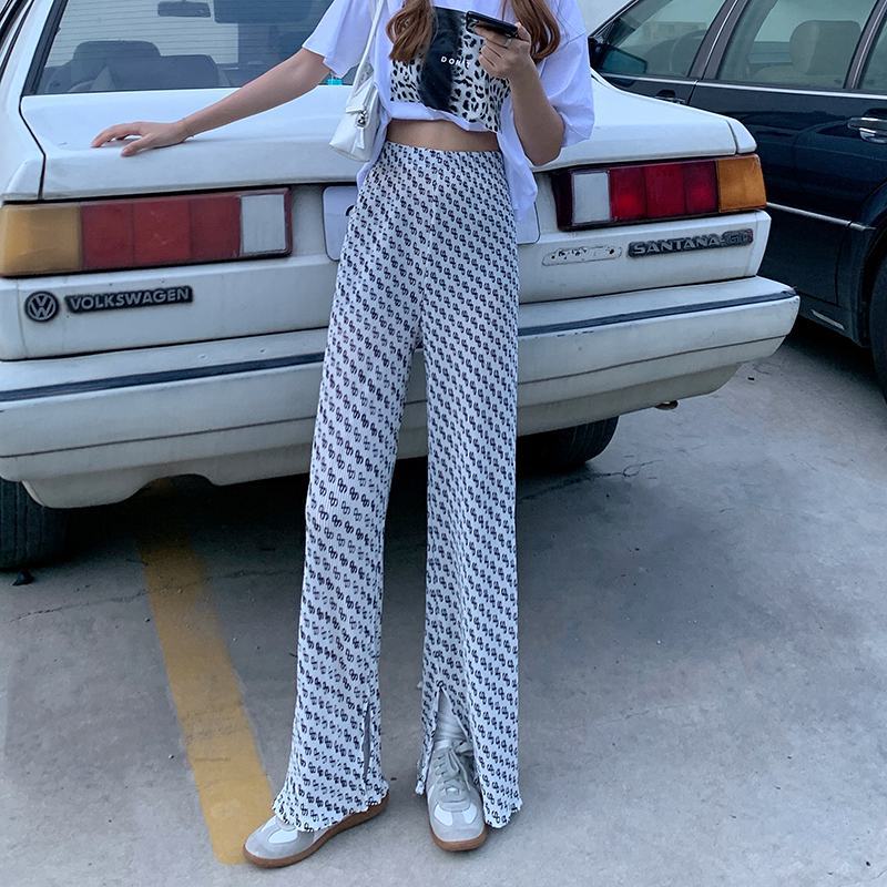 BY18251# 大码女装新款字母印花开叉休闲裤新款宽松高腰百搭直筒拖地裤 服裝批發女裝批發服飾貨源