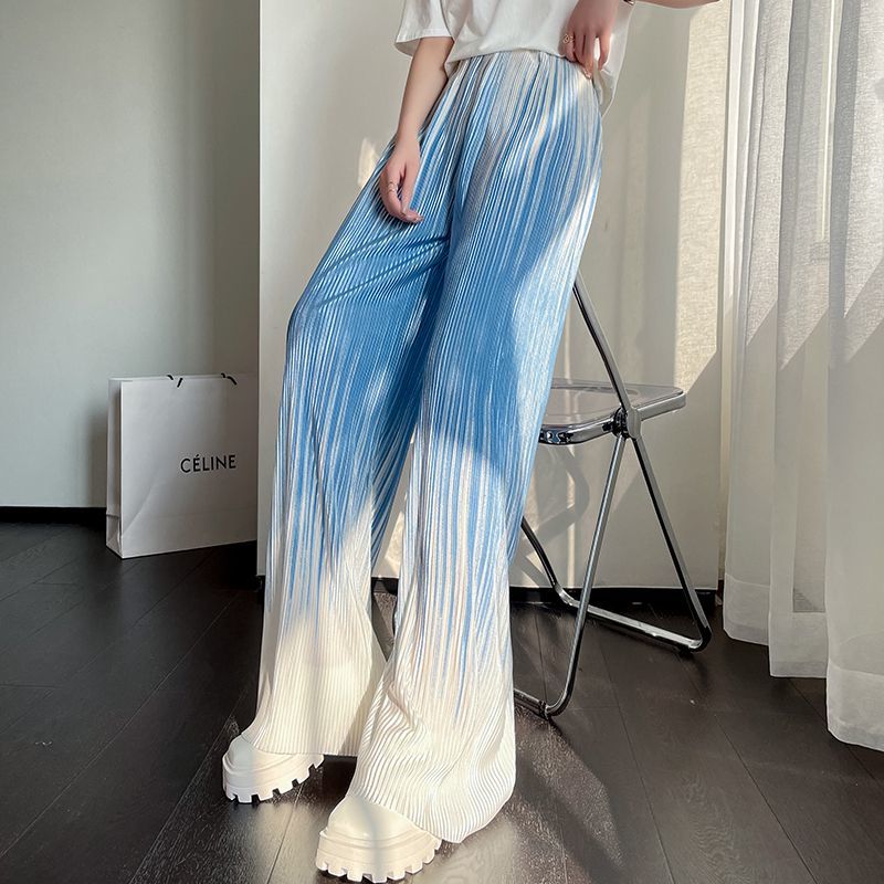 BY18254# 大码女装渐变色阔腿裤女压褶风格新款高腰显瘦直筒裤垂感休闲长裤 服裝批發女裝批發服飾貨源