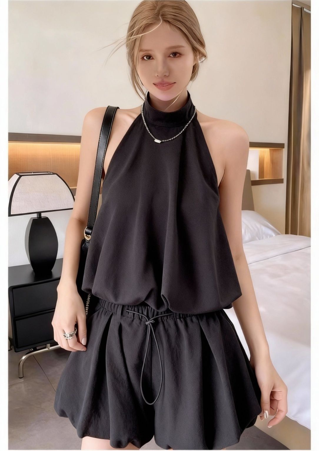 BY18262# 新款夏季无袖花苞露肩挂脖背心上衣女阔腿灯笼短裤裙两件套装 服裝批發女裝批發服飾貨源