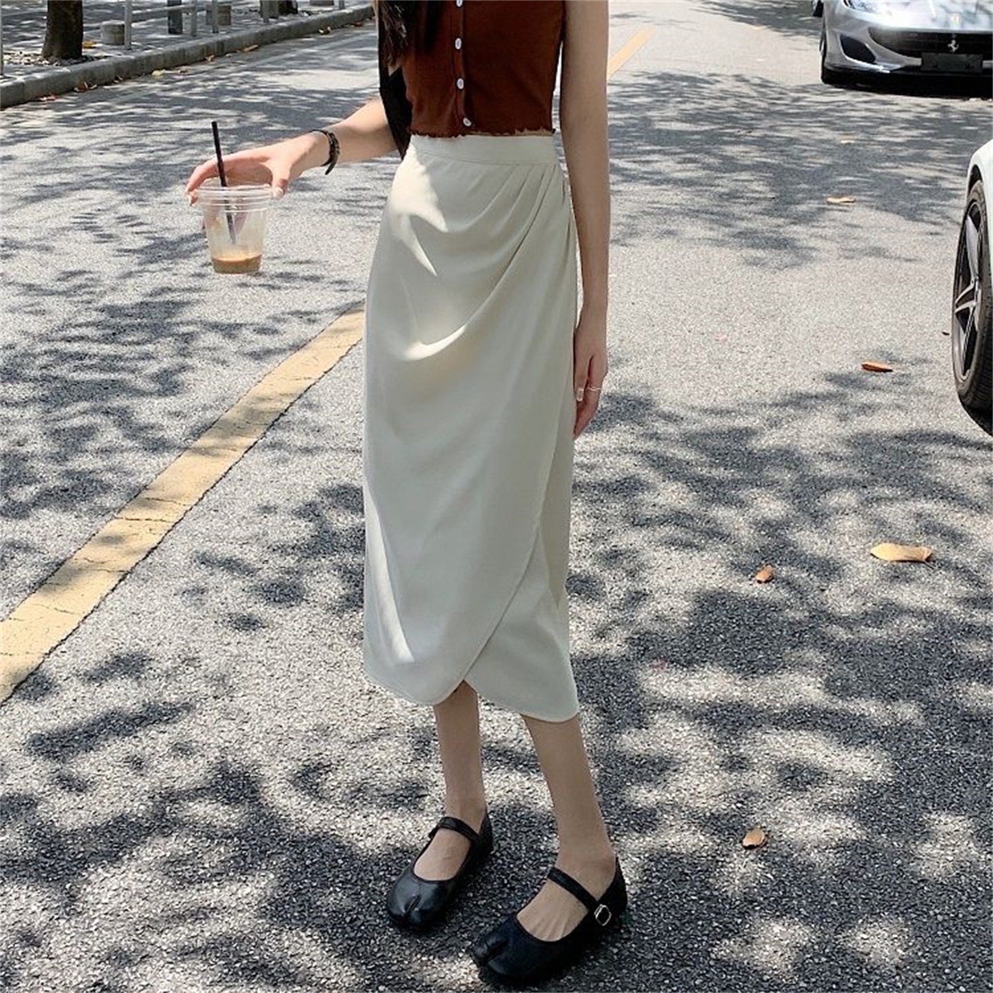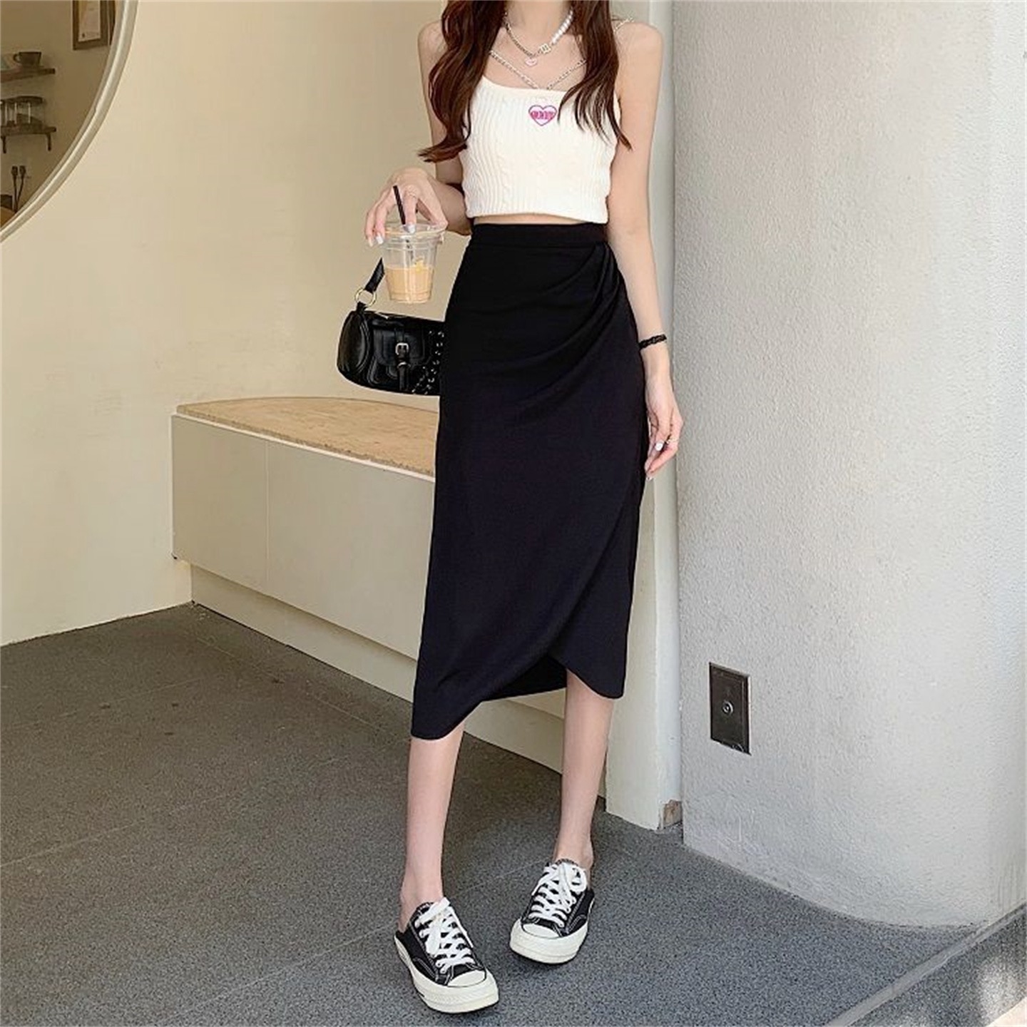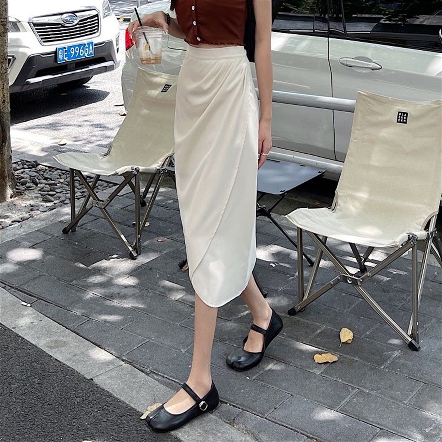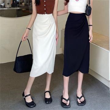 BY18264# 半身裙女中长款设计感小众复古高腰开叉一步裙褶皱包臀裙 服裝批發女裝批發服飾貨源