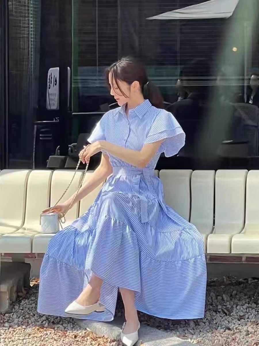 首页 > 短袖连衣裙、夜店装 > BY19405# 新款韩版条纹蛋糕层连衣裙 服裝批發女裝批發服飾貨源